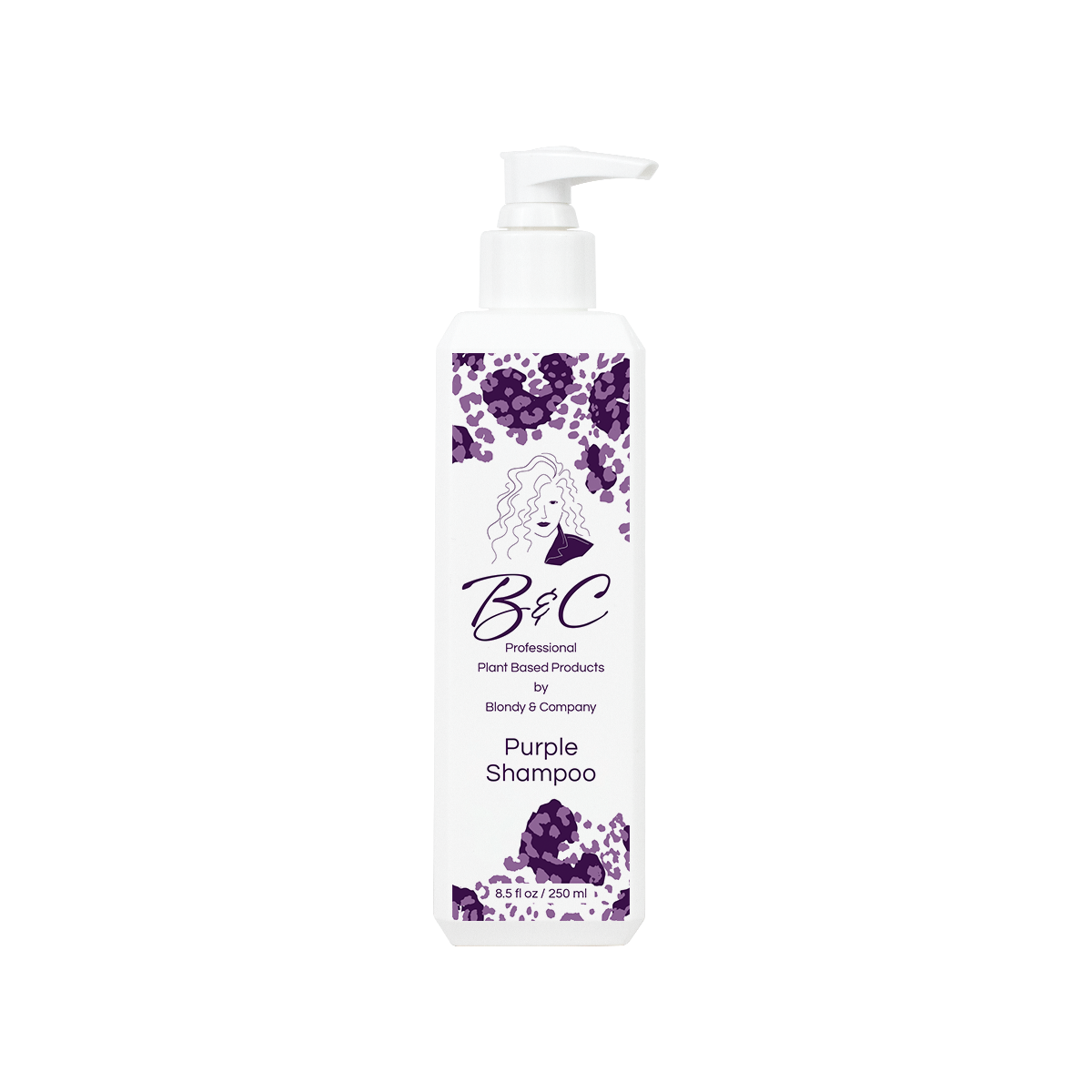- Purple Shampoo A gentle cleansing shampoo with cool violet pigments that neutralize unwanted yellow and brassy tones in blonde, silver, and lightened brunette hair.