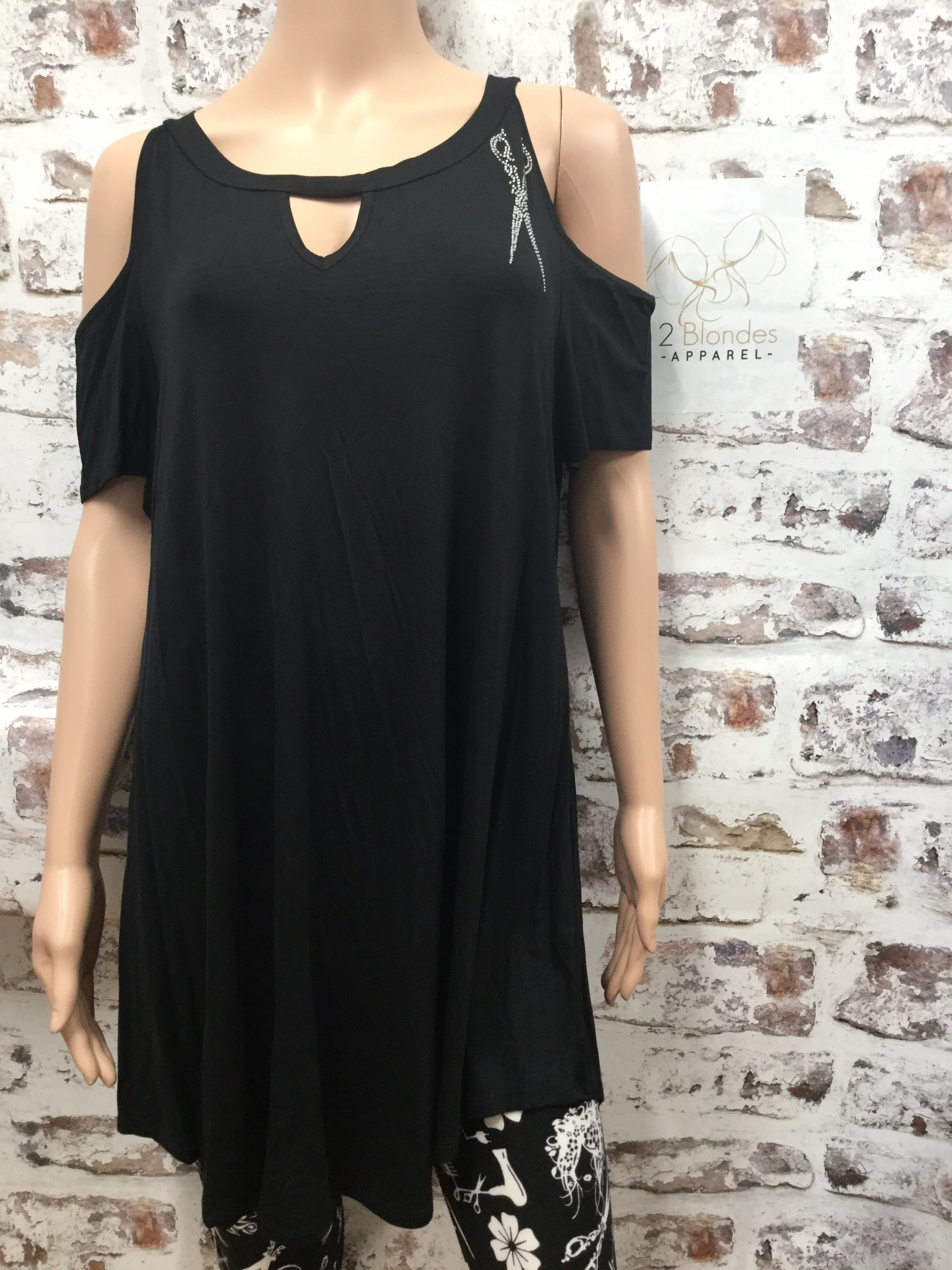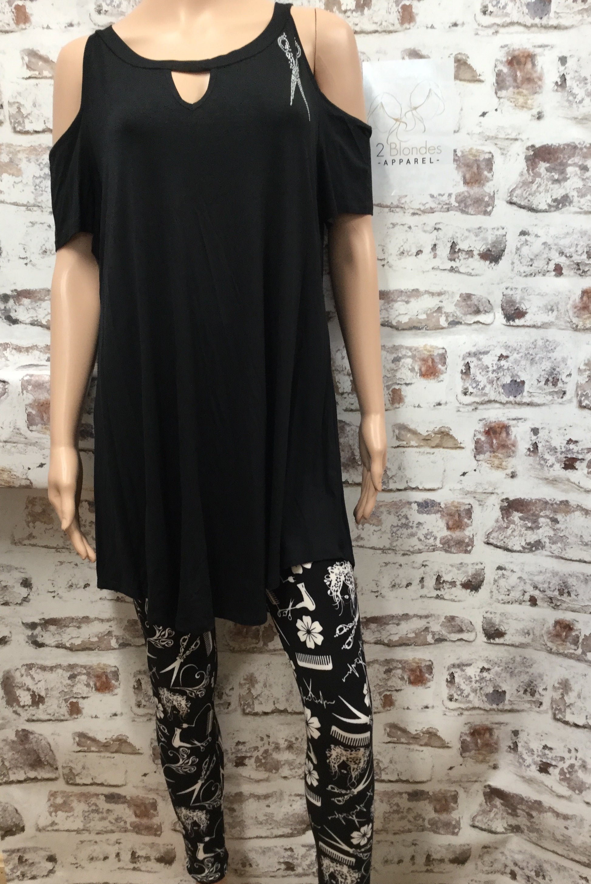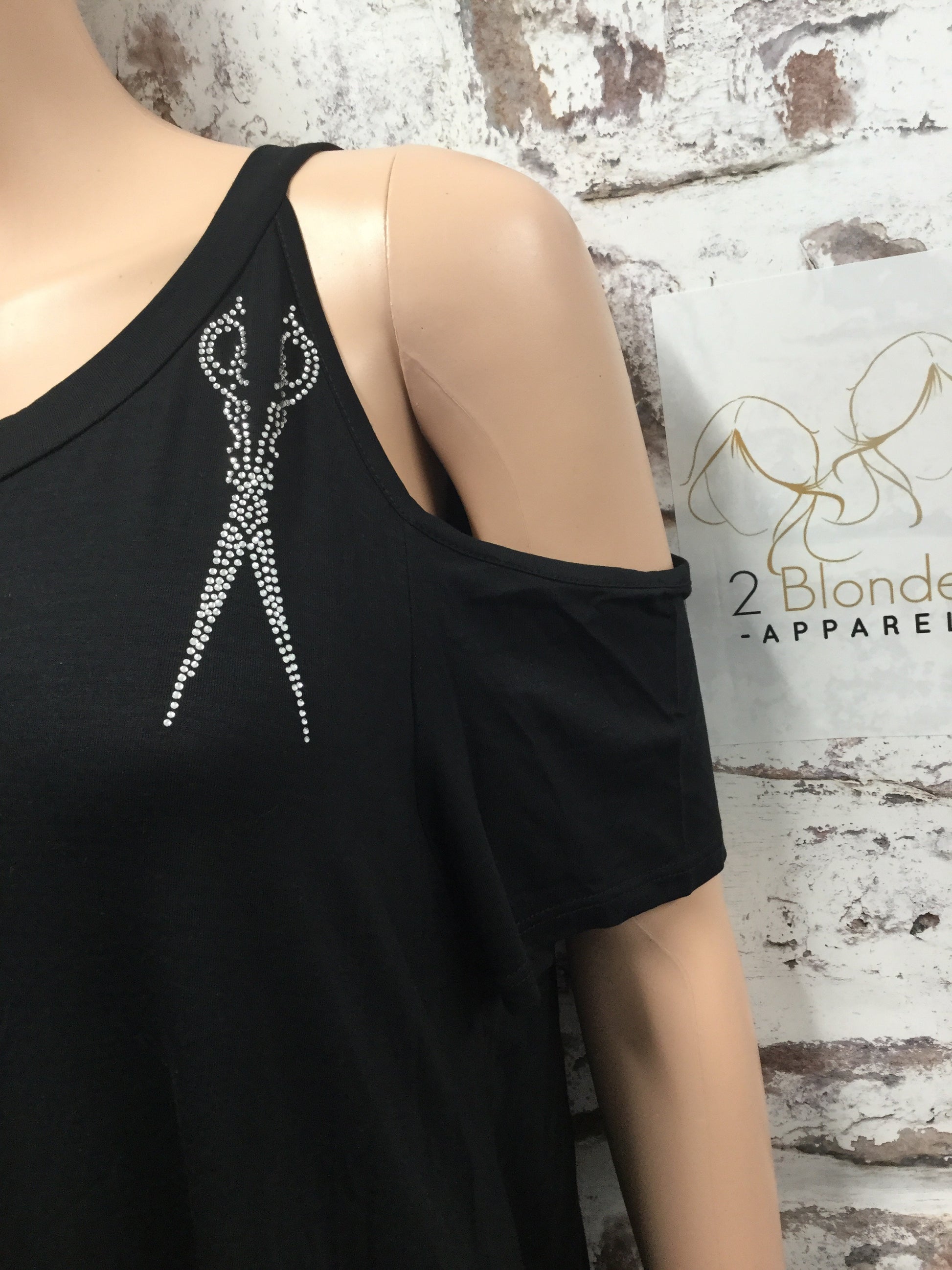 Stylist Cold Shoulder w/rhinestone Scissor Top