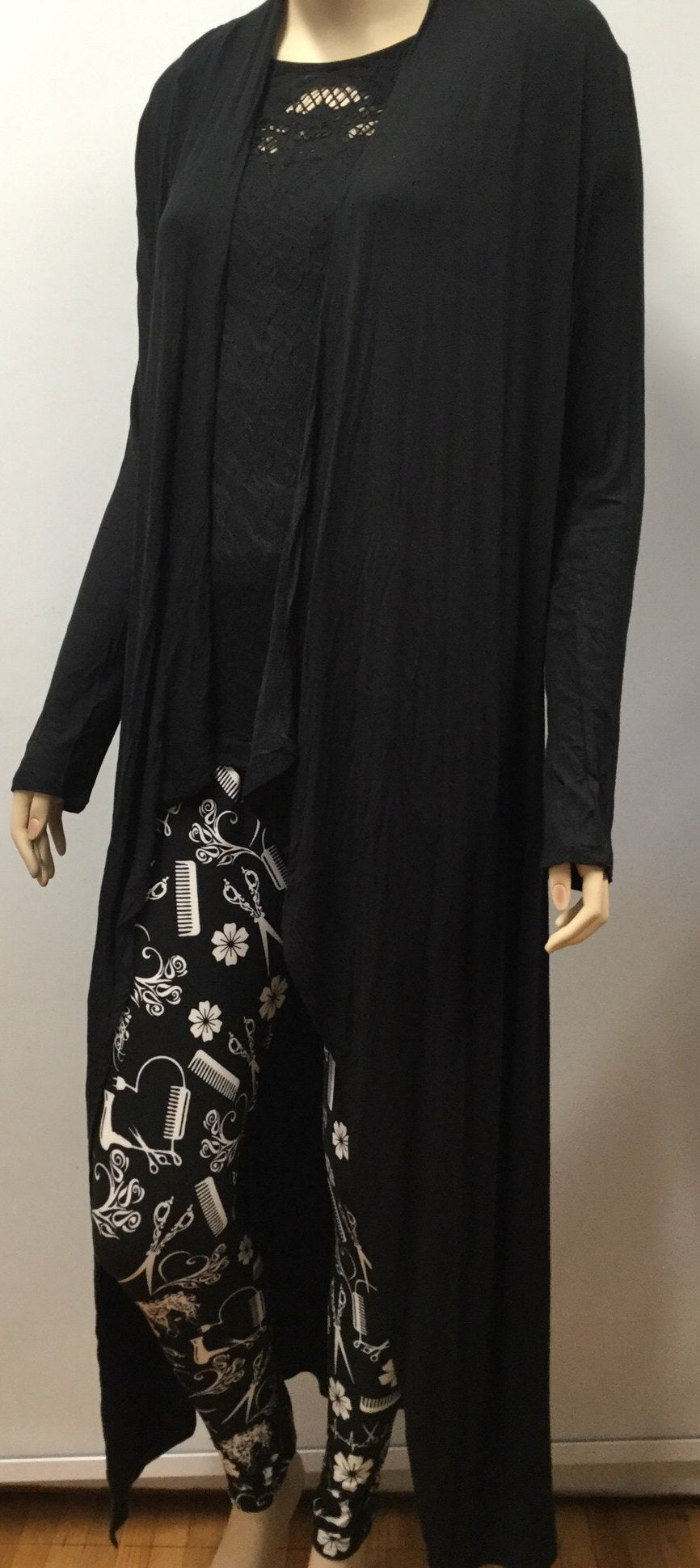 Stylist Hi-Lo Cardigan with Scissor Rhinestone Accentclo