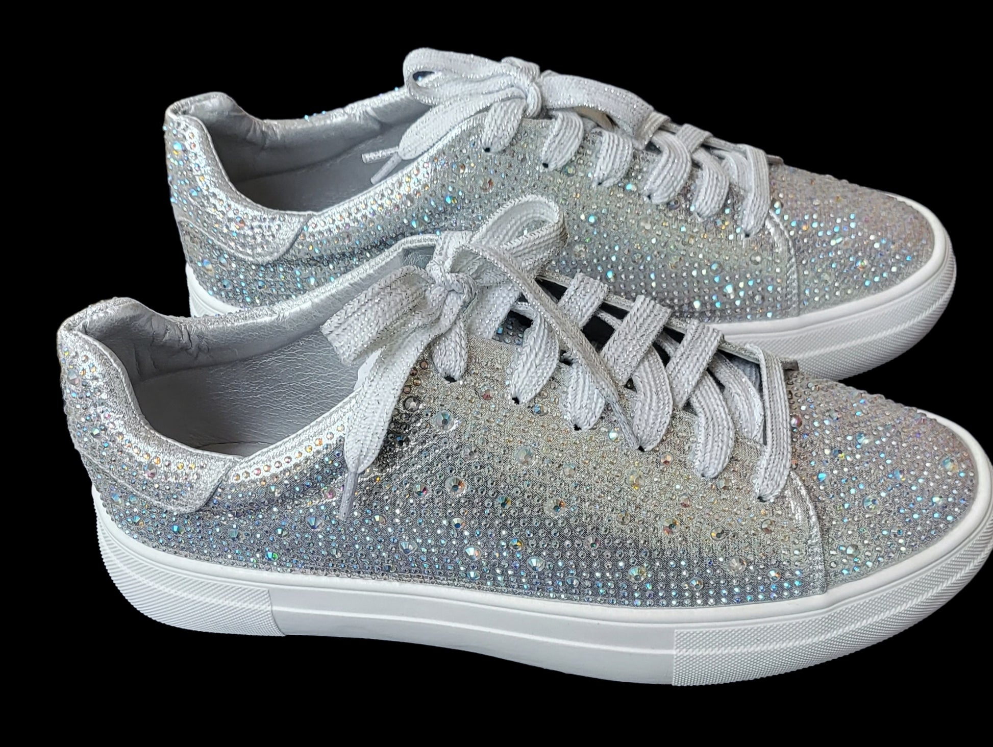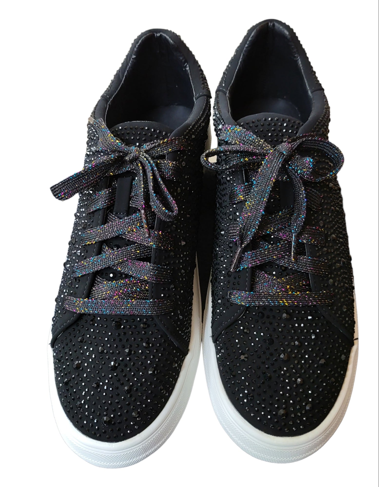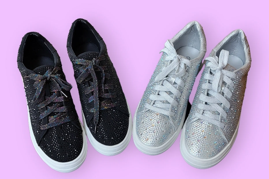 Show off your style in these dazzling Bling Lace Up Sneakers. Featuring rhinestone details and a comfortable fit, you can make a statement with every step. Sparkle and shine your way into the season with these must-have sneakers.