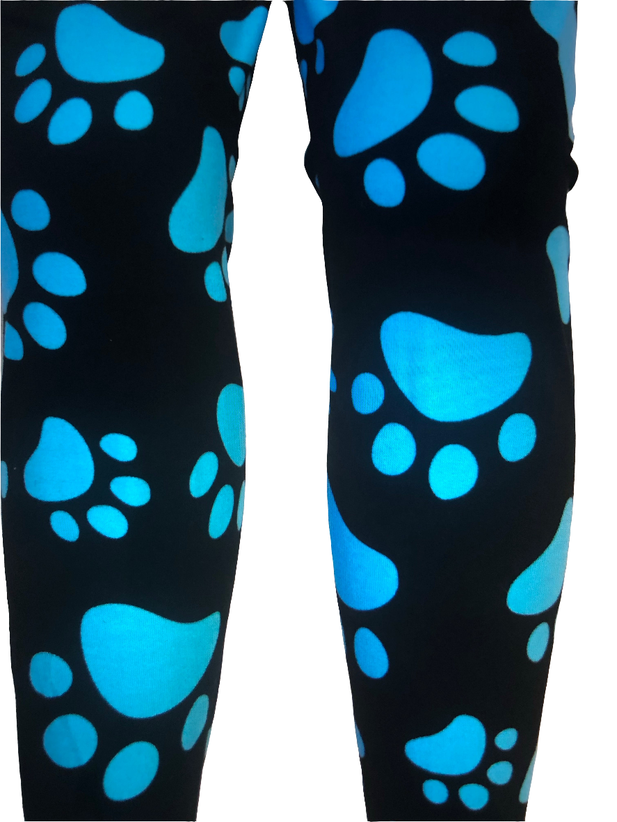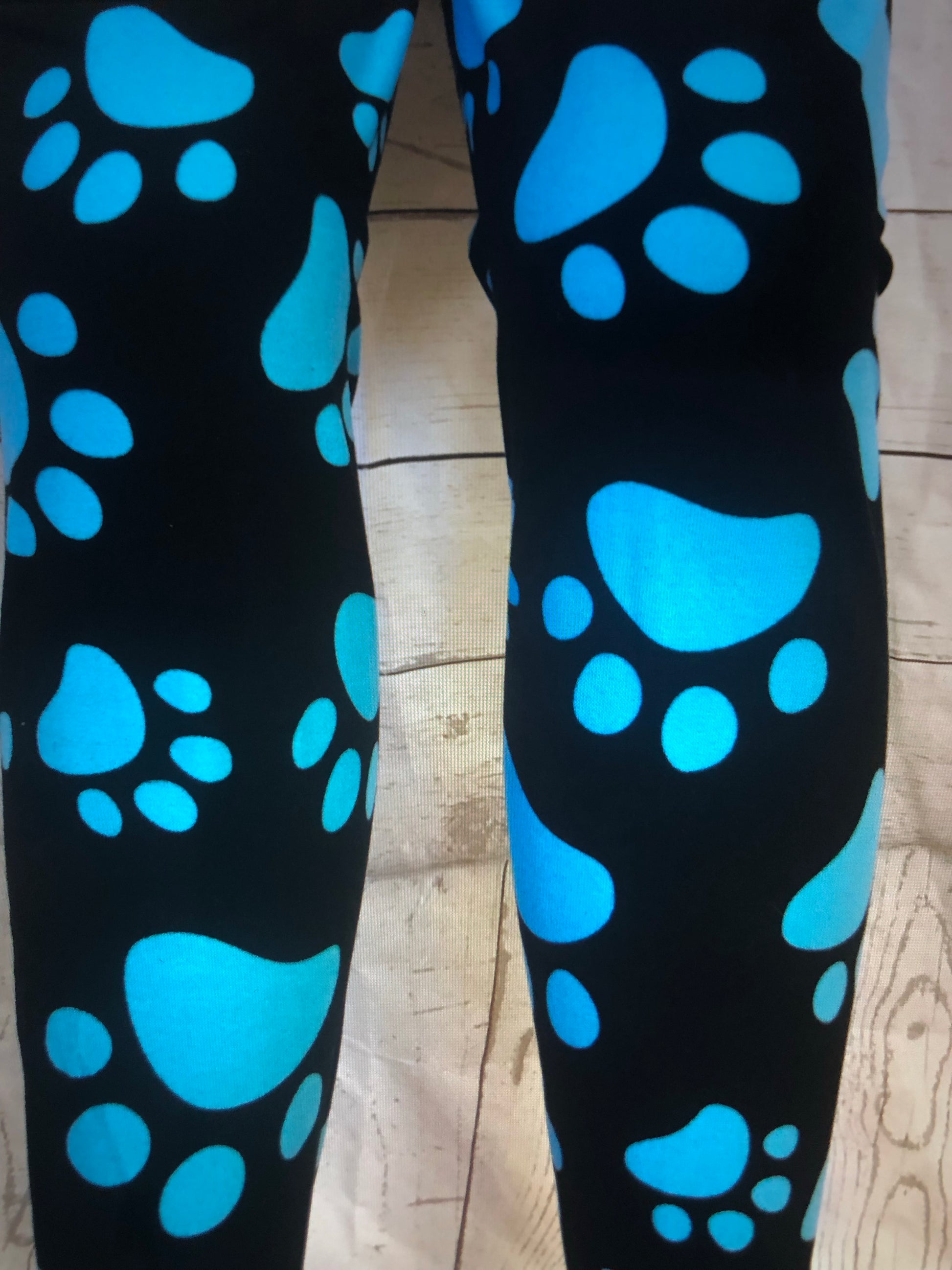 - Bring your wardrobe to the next level with this super soft and cute buttery soft ankle legging, featuring a blue paw print. Because of its smooth and comfortable fit, you can wear these anywhere and anytime. Dress it up with an over sized top and a pair of sneakers for a casual day ensemble. Paneled elastic waistband.