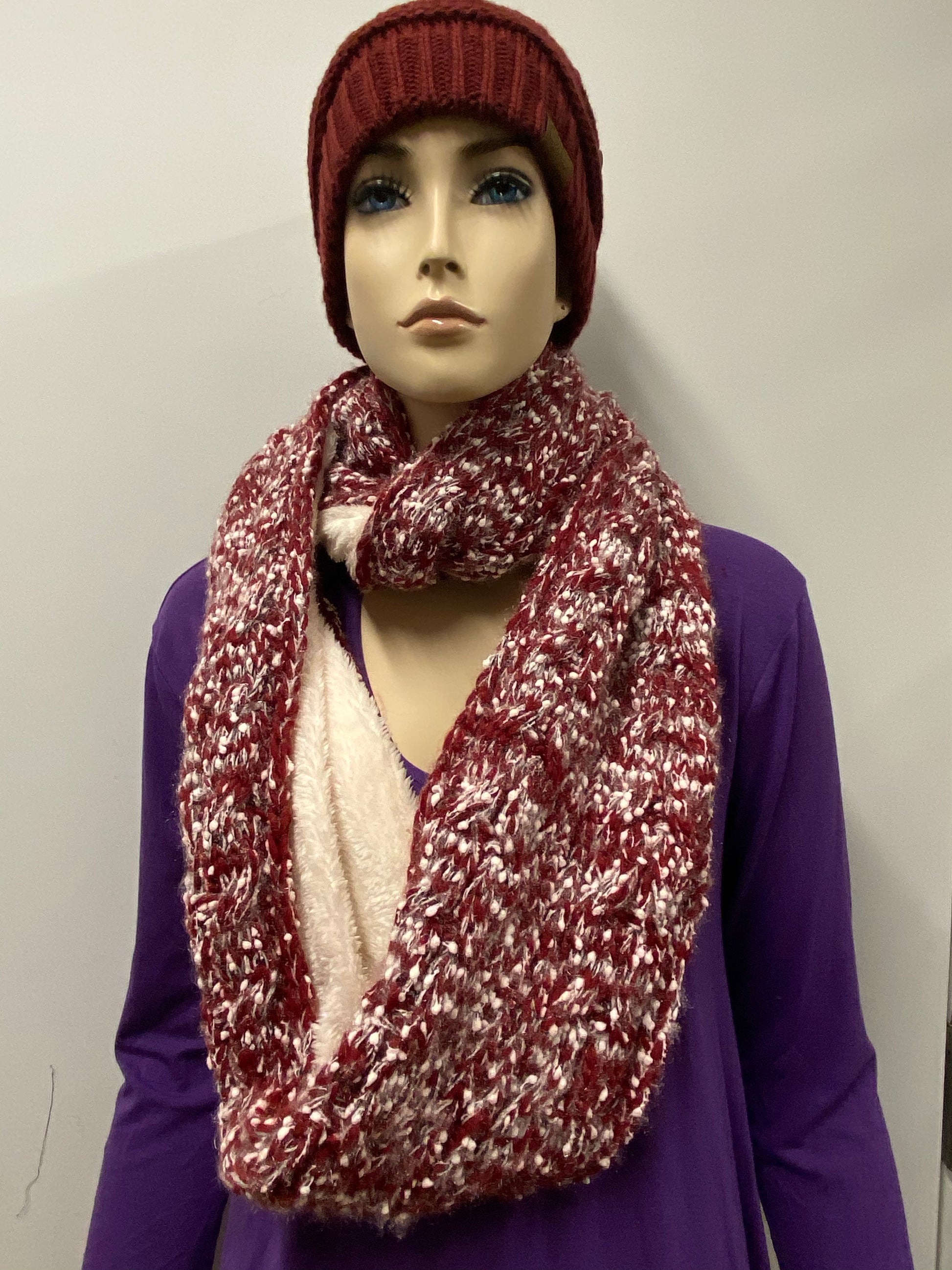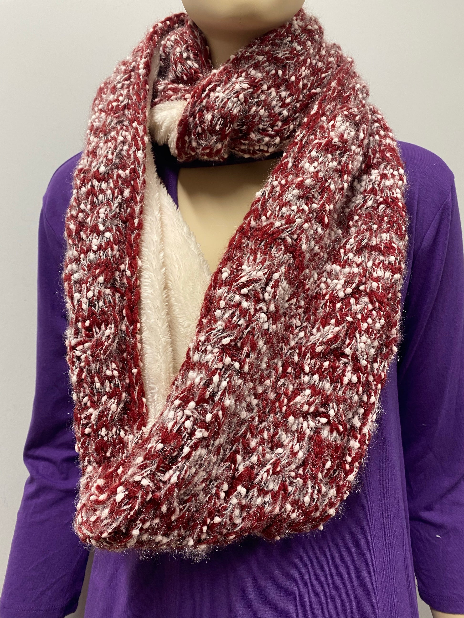 This scarf is made with eyelash confetti yarn. Its measurements are 7"x29.5".