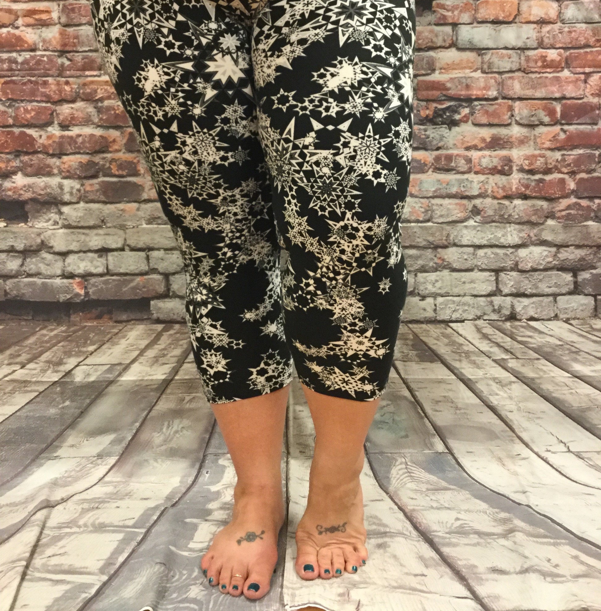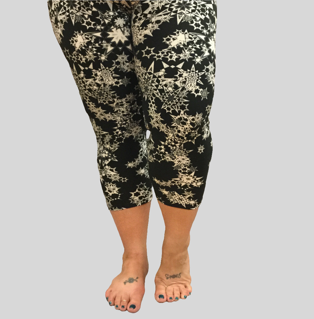 Count your lucky stars in these super soft capri length leggings. With an elastic waistband, you'll feel comfortable and stylish all day long. Don't miss out on adding this quirky print to your wardrobe!