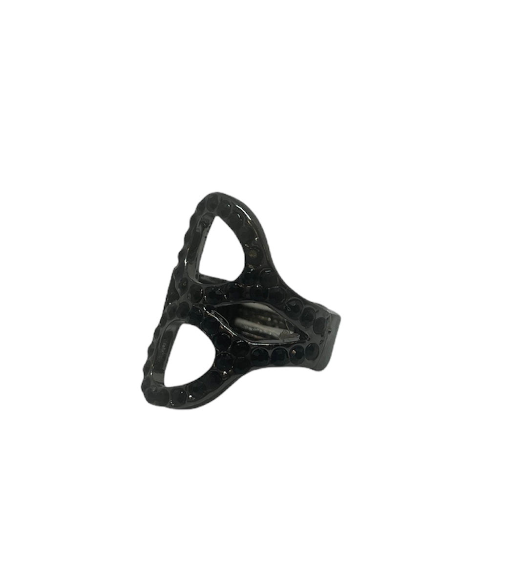 Rhinestones come in black on black metal or clear rhinestones on silver metal.
