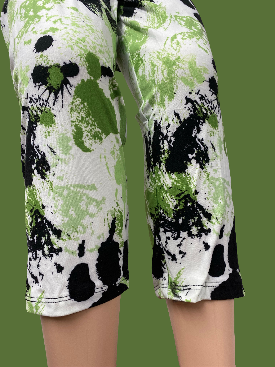 1X - 3X plus size paw printed high waisted capri leggings with an elastic waist.