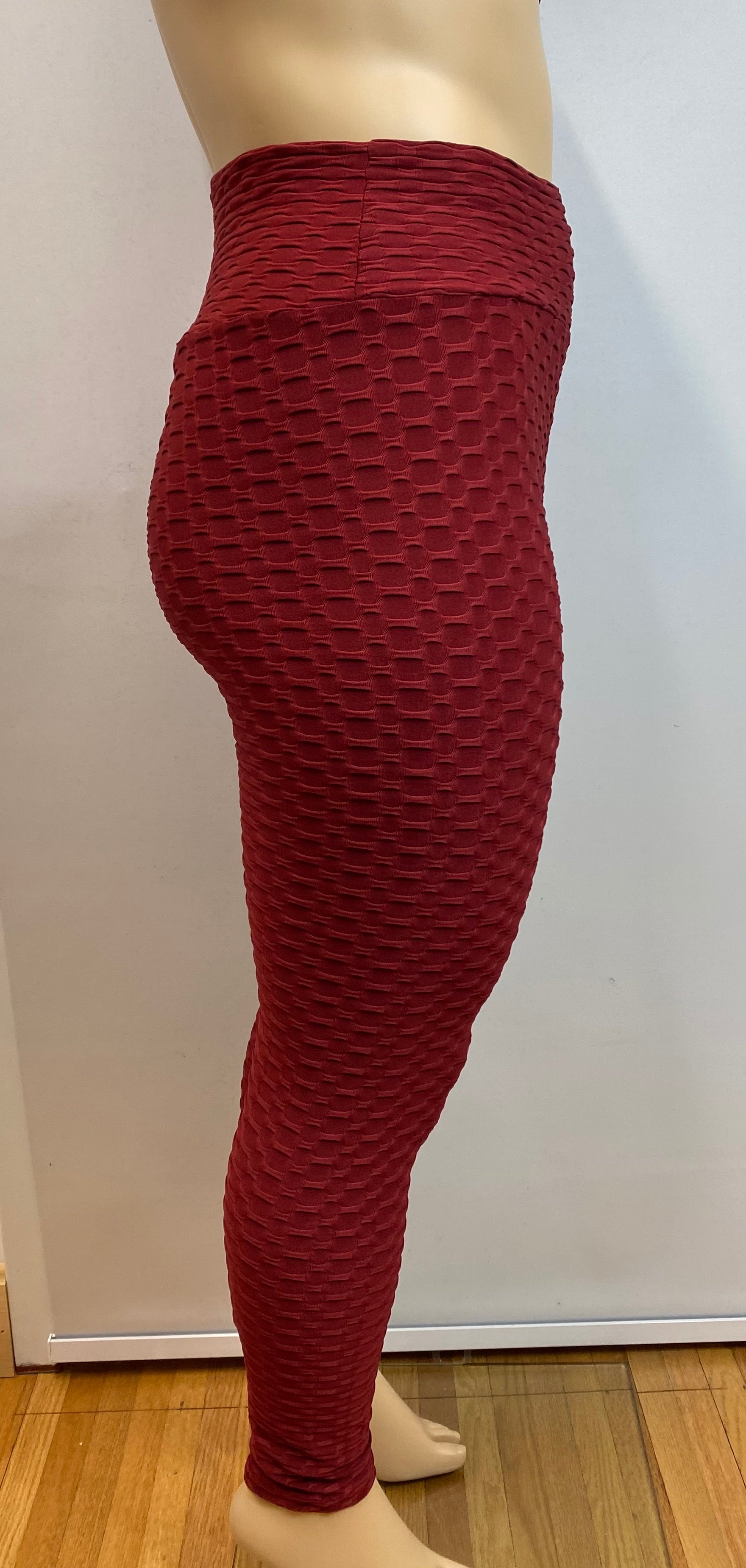 Plus Honeycomb Burgundy Leggings