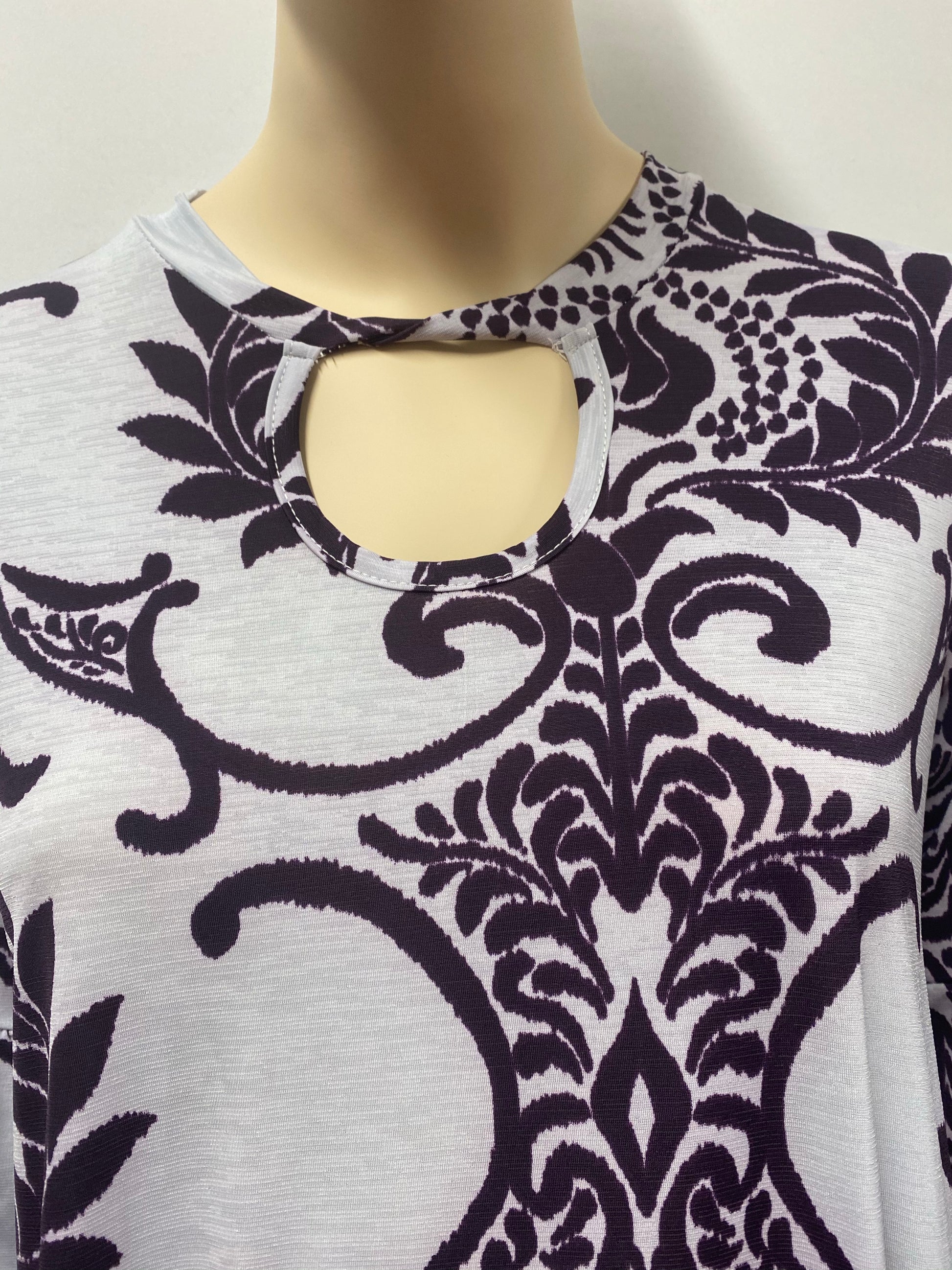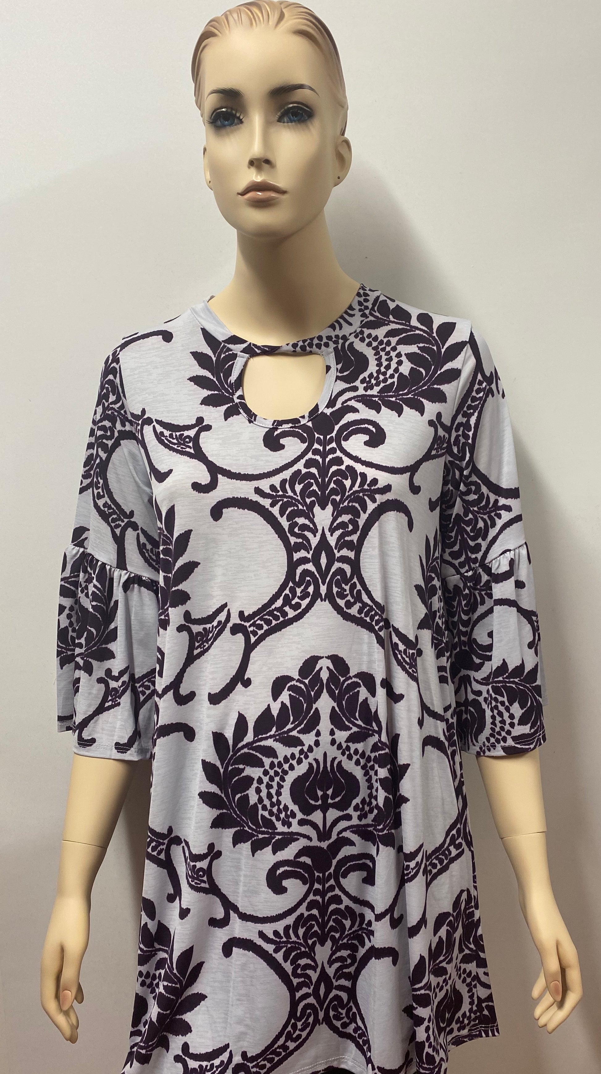 New Style vintage wallpaper damask print tunic. 3/4 ruffled sleeve.