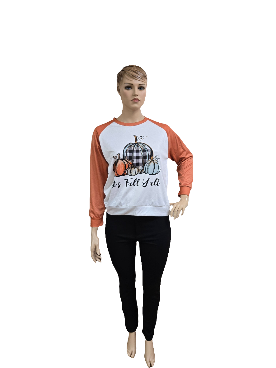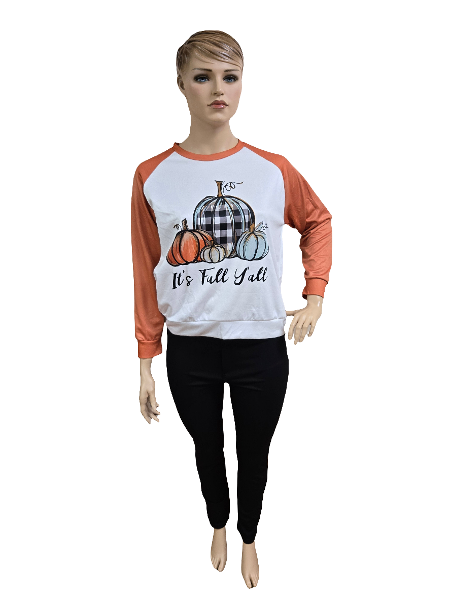 Stay cozy and stylish this fall with our It's Fall Ya'll pull Over Top. Made of soft polyester, this pullover top features a fun orange and white bodis in a classic baseball style. Complete with cute pumpkin graphics, it's perfect for any autumn outing.