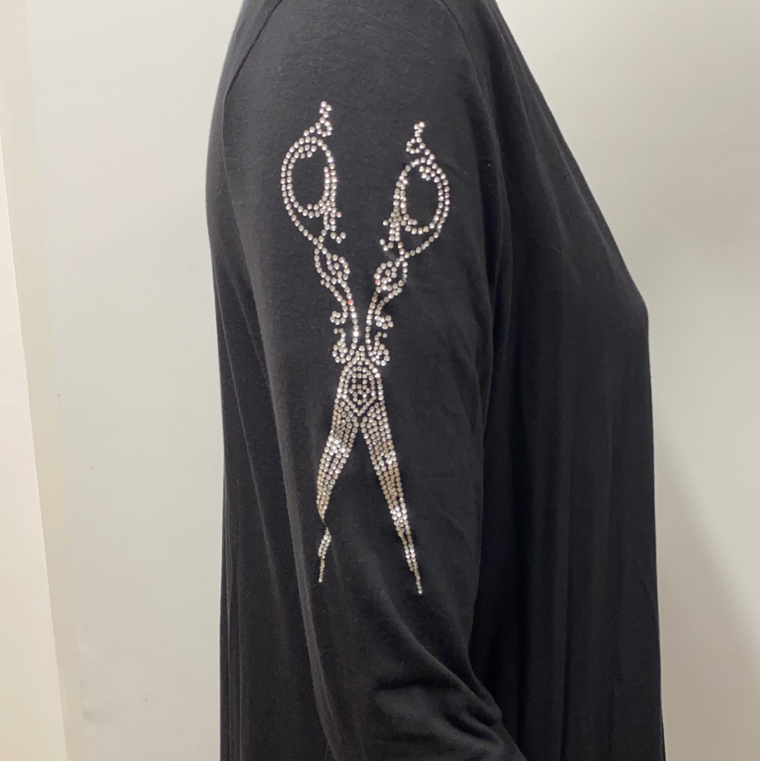 Stylist Cardigan with Scissor Rhinestones on the Sleeve