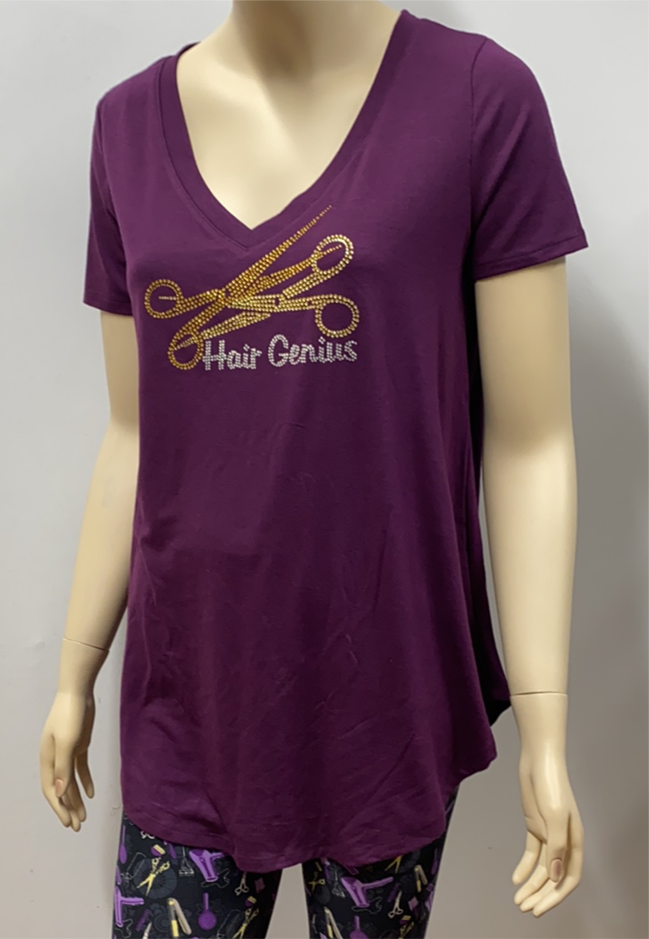 This is a stylish top with our Hair Genius Custom Scissor Rhinestones design added to a classic style tunic with a V neckline.