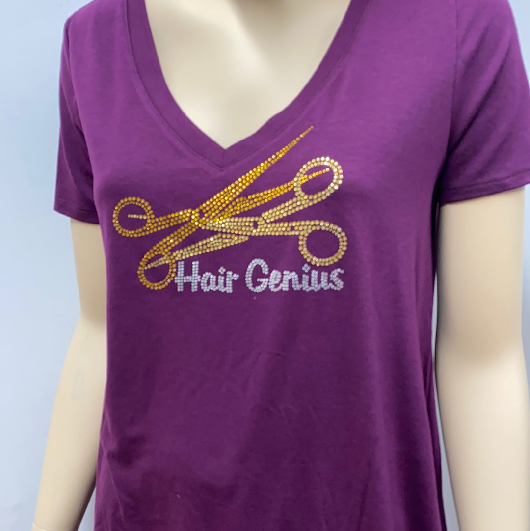 Stylist V Neck "Hair Genius" Rhinestones Top