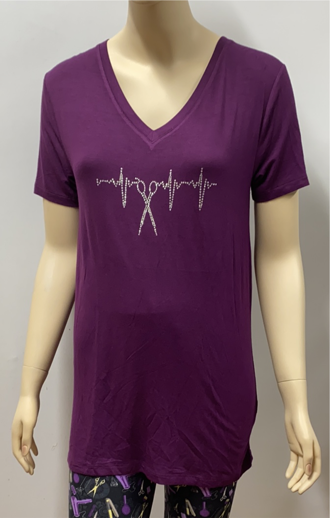 This is a stylish top with our Heartbeat Custom Scissor Rhinestones design added to a classic style tunic with a V neckline.
