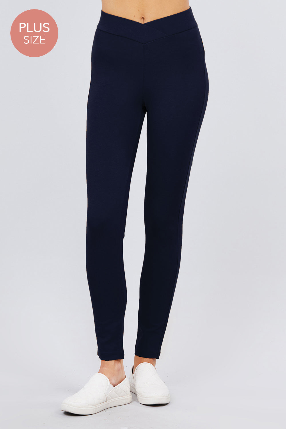 Step up your style with our Mid-Rise Ponte Pant Plus. Crafted from a luxurious blend of rayon, nylon, and spandex, these skinny pants offer both comfort and sophistication. The unique elasticized waist ensures a perfect fit, while the three inseam lengths and chic 30-inch modeling elevate your wardrobe. Available in plus sizes, lengths of 28-30".