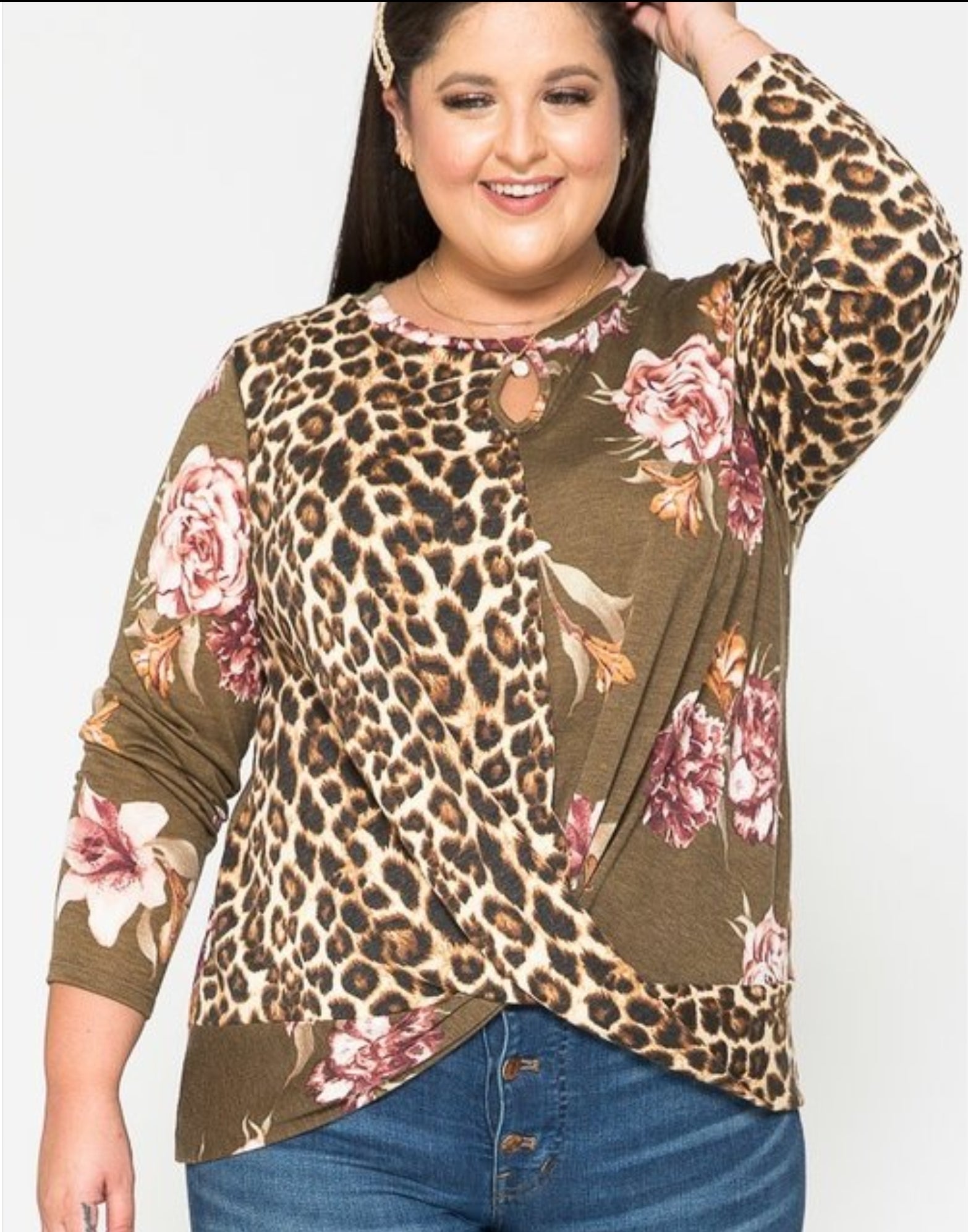 Description: Round Neck Front Keyhole Bottom Twist Long Sleeve Top