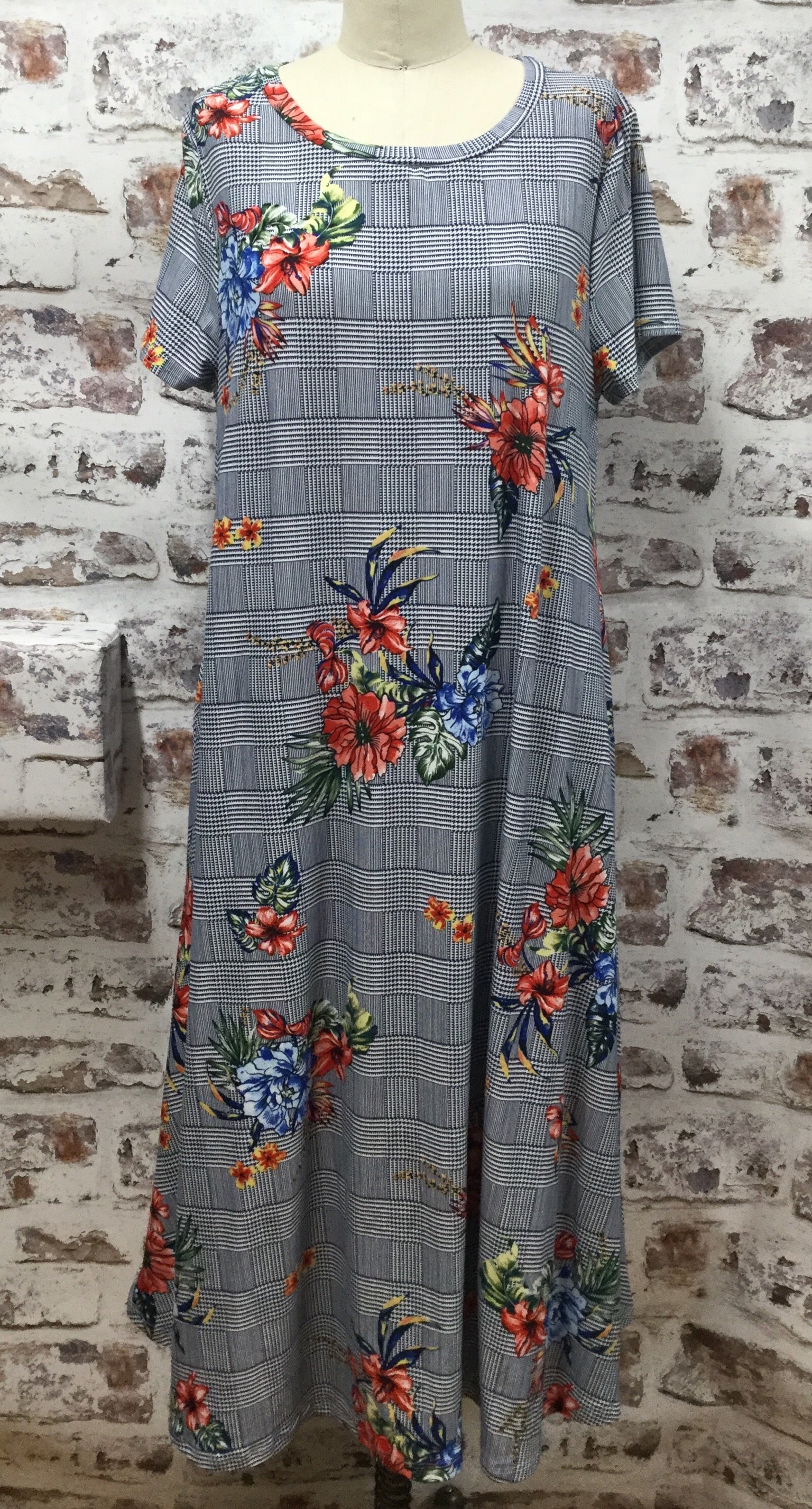 This Midi-length dress has super soft feel fabric with short sleeves.