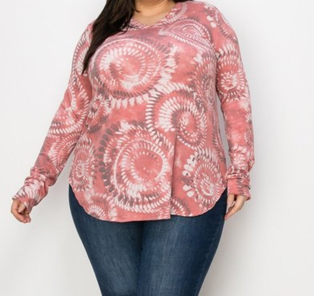 Expertly designed for plus size women, the Plus Swirl Design Top offers lightweight warmth with its long sleeves and round neckline. Its chic redish color adds a touch of style to any outfit. Stay comfortable and fashionable with this must-have top.