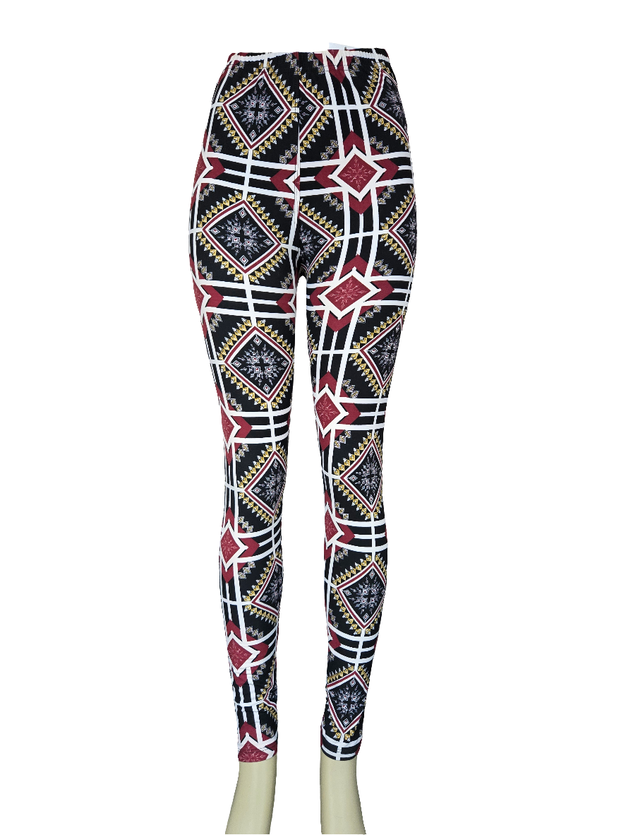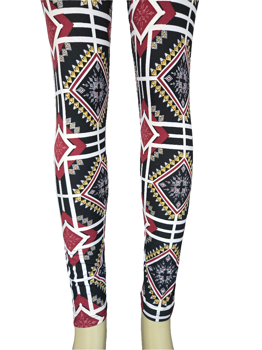 Printed Leggings "Burgundy Space Aztec"