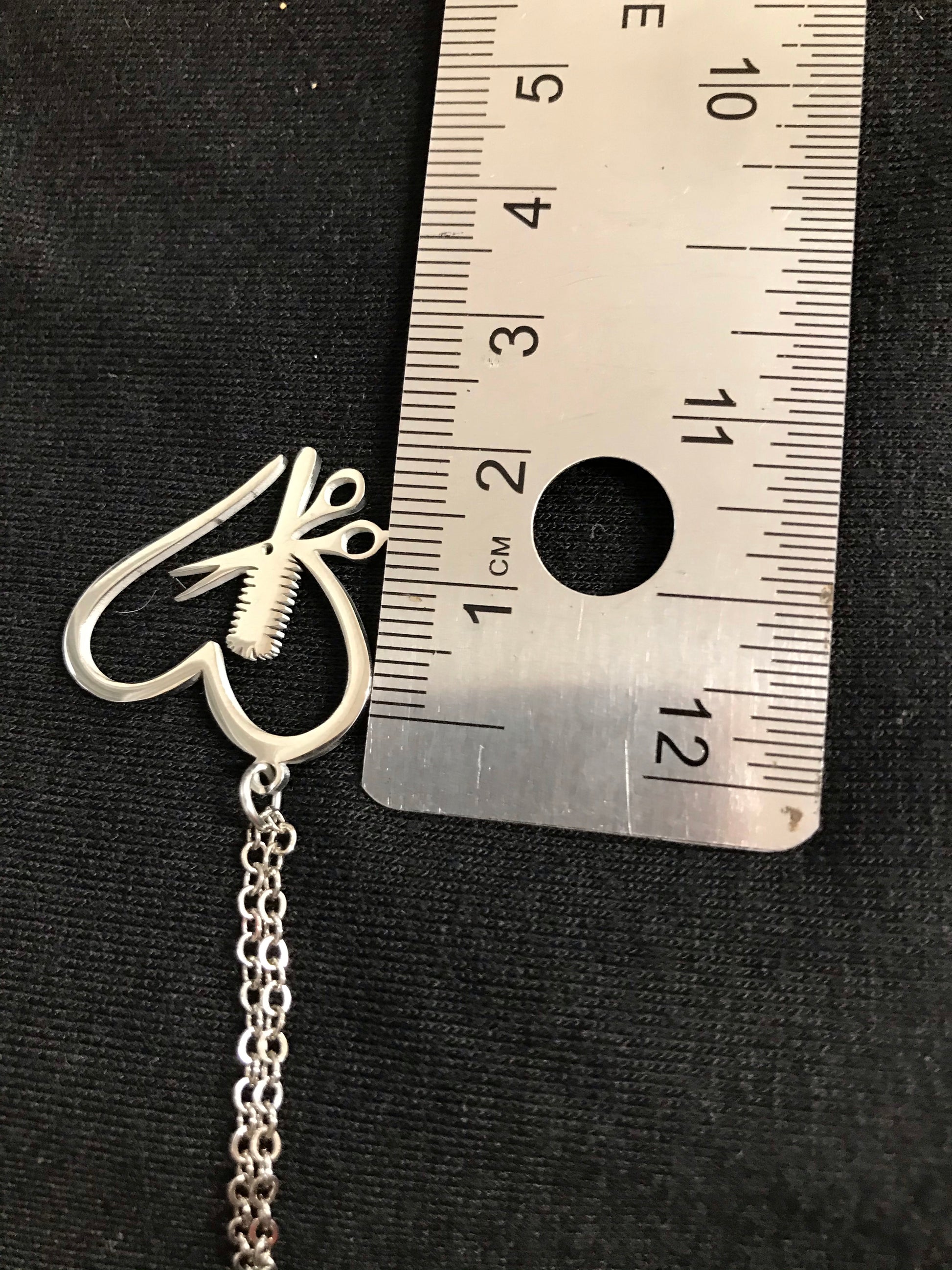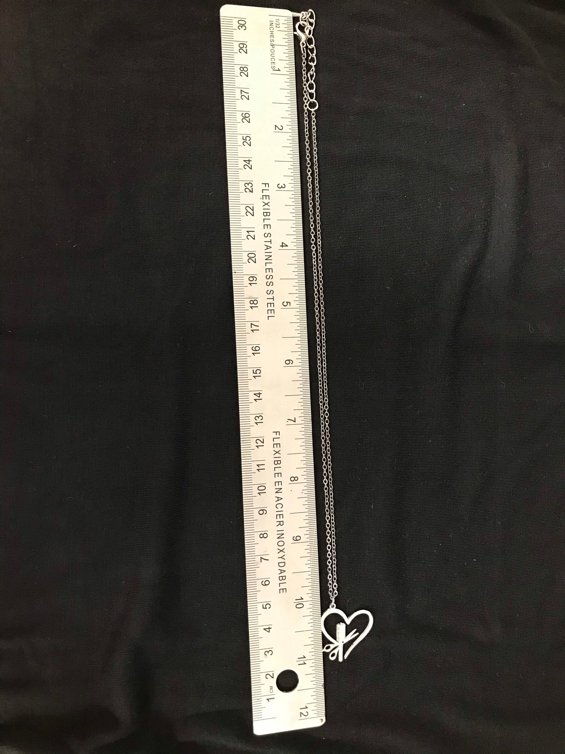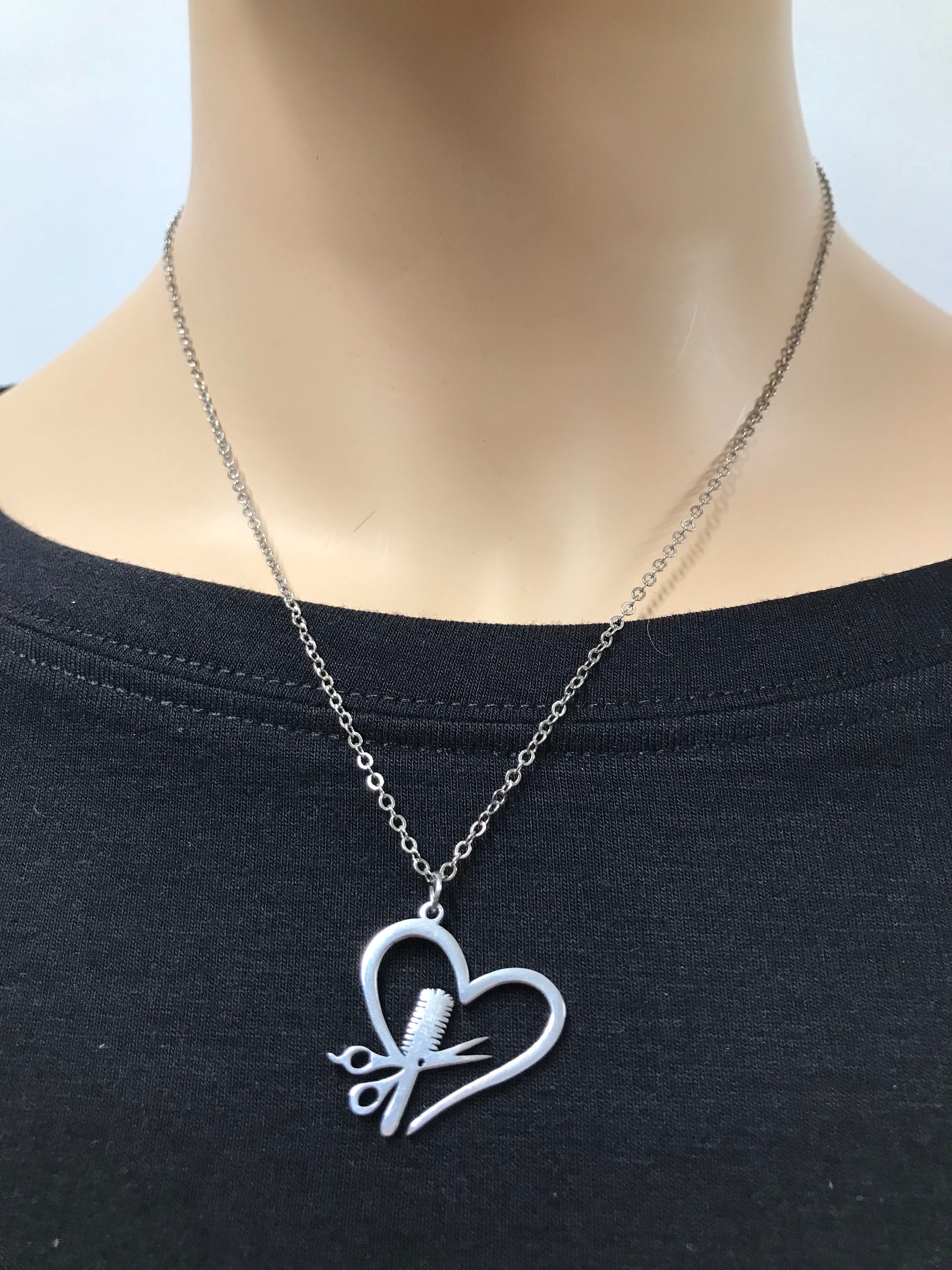 Enhance your look with this silver chain necklace . Constructed from high-polished stainless steel with a lobster claw clasp for support, this necklace boasts lasting durability and promising security for daily wear. This chain is versatile and sophisticated open heart design, makes this a perfect complement for every hair stylist.