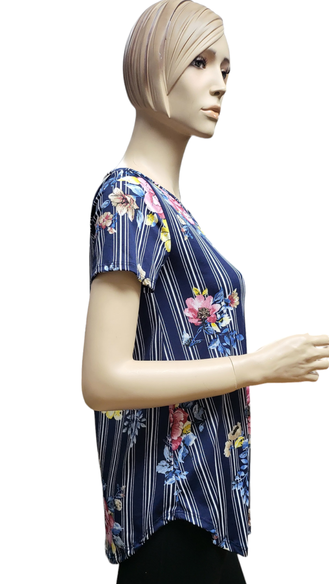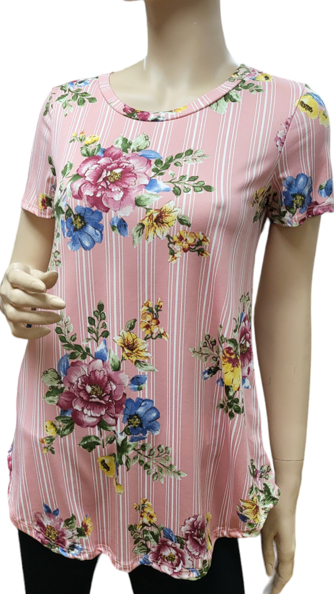 Elevate your spring wardrobe with our Spring Short Sleeve Top. Featuring a striking combination of florals and stripes, this top is designed to keep you fashion-forward while staying comfortable with its lightweight, short-sleeve design. Perfect for any occasion, this top is a must-have for the season.