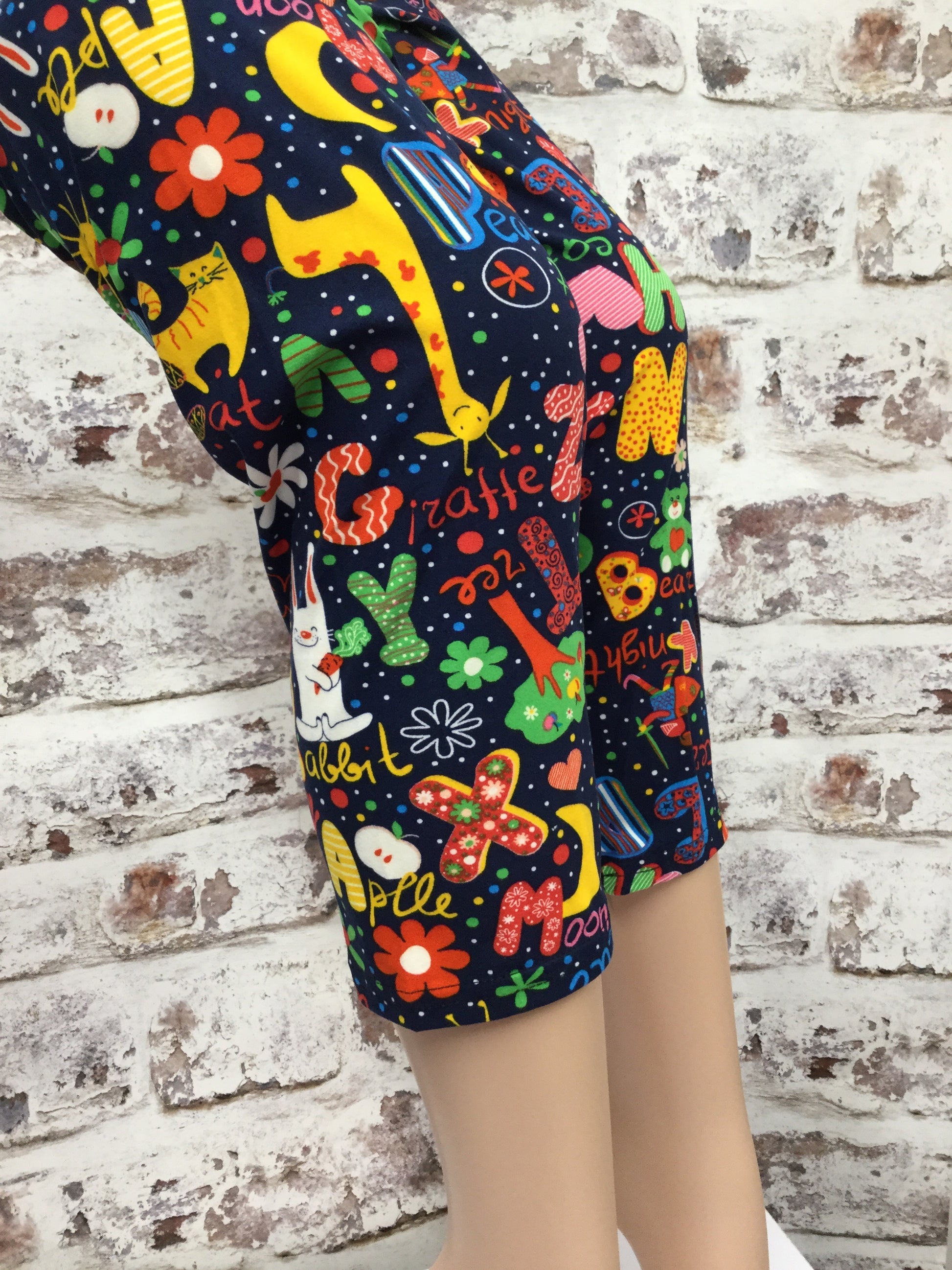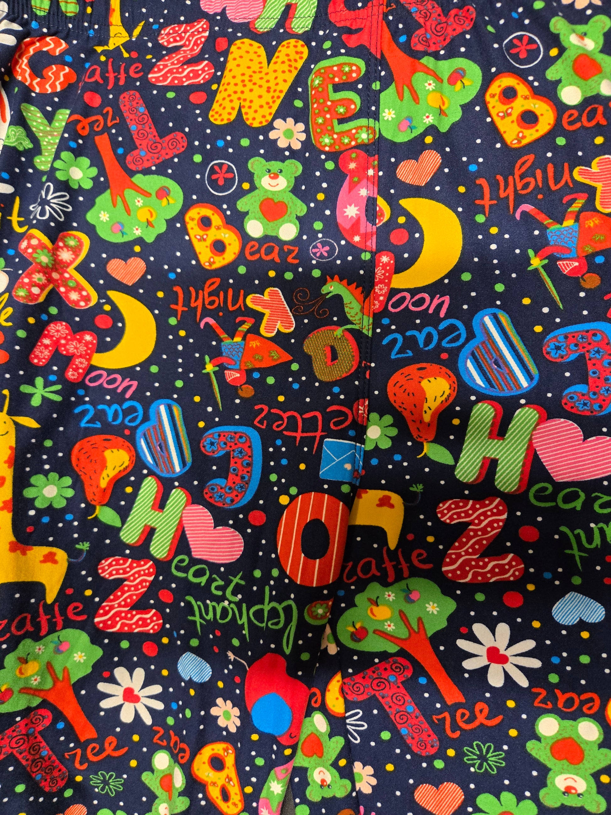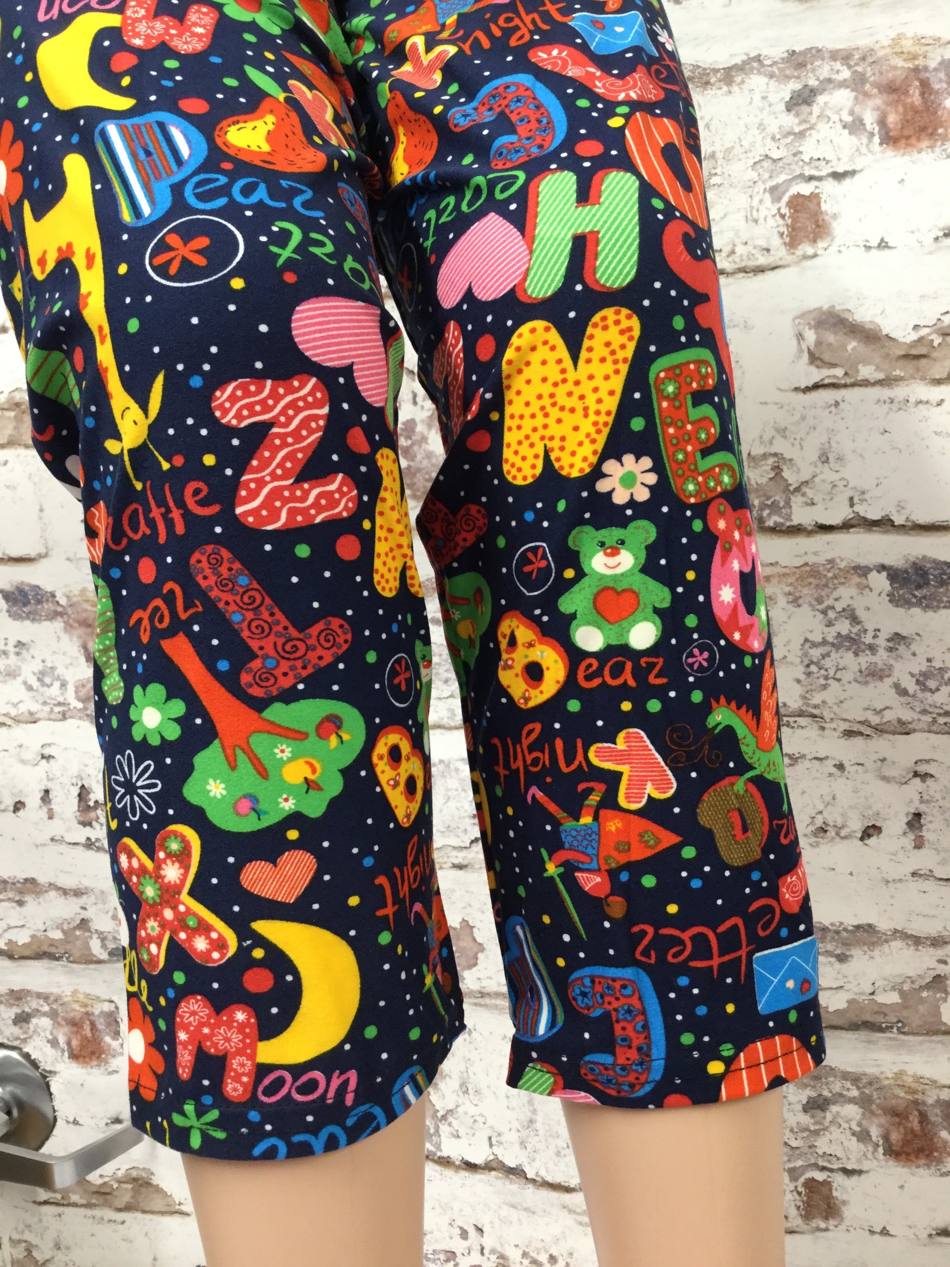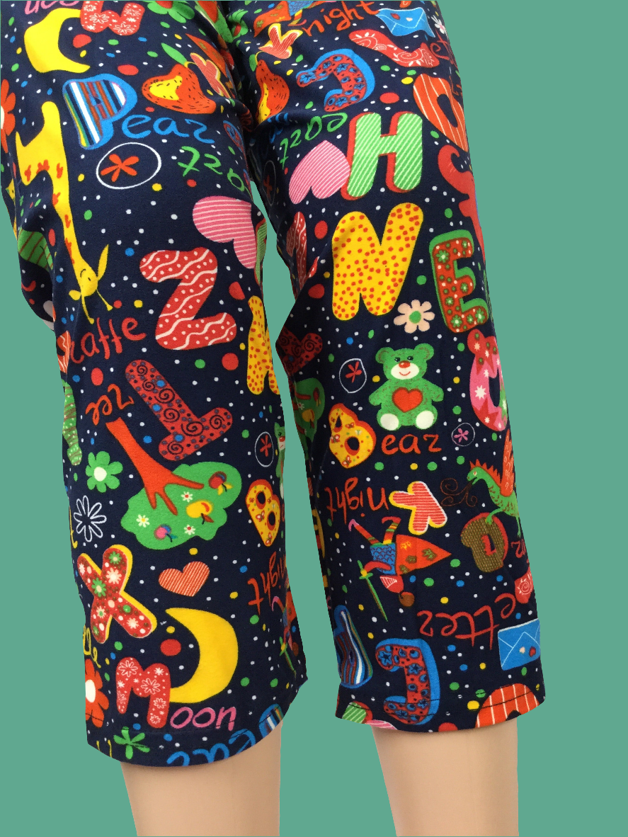 - Fun colorful alphabet print Capri in buttery soft fabric with elastic waistband, and flexible fit are all-day-comfortable and everyday versatile.