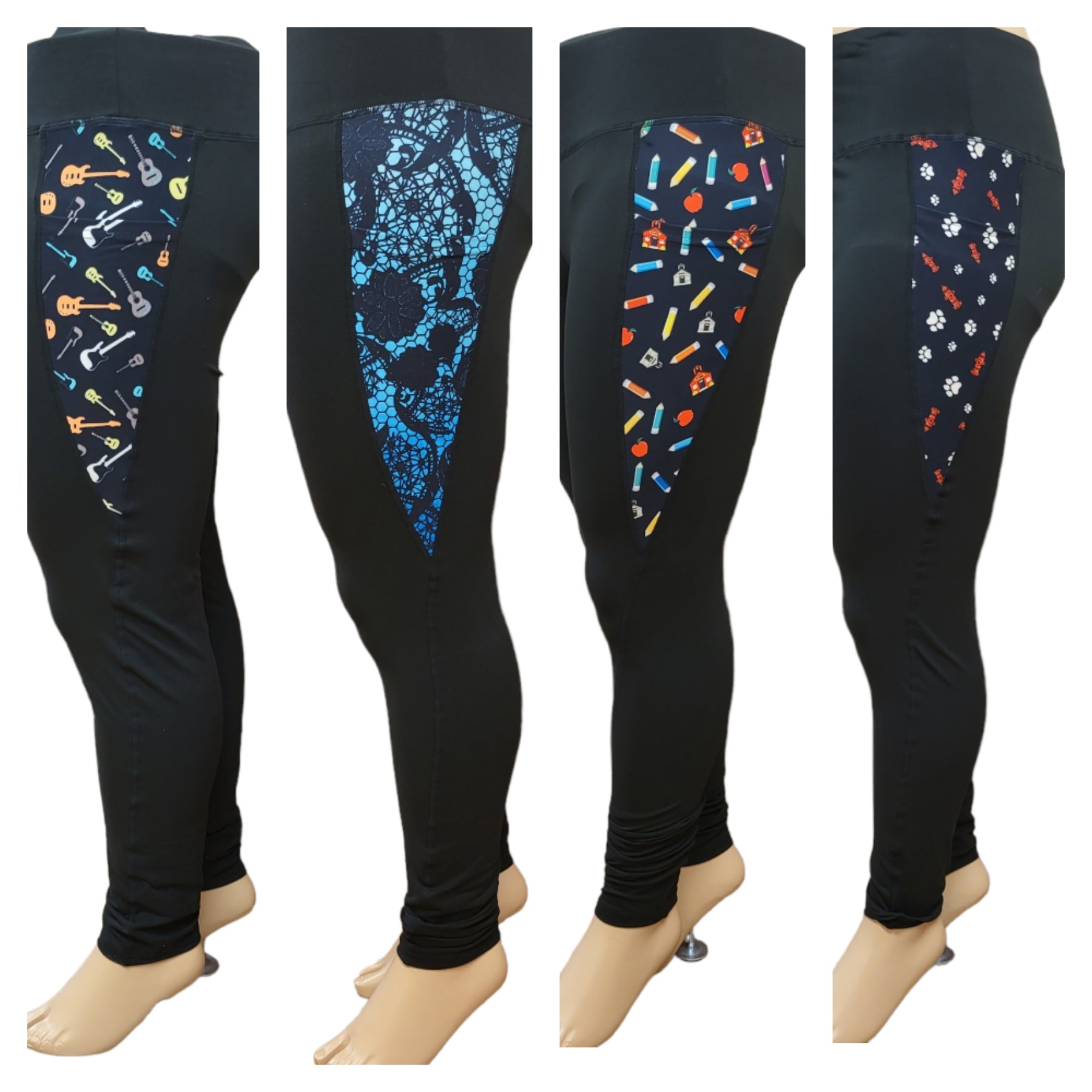 V Shaped Pocket Leggings "Teacher" "Paws" " Guitar" "Lace"