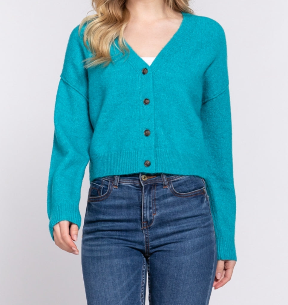 Take on any challenge with our Waist Length Button Down Sweater! Made of a cozy sweater fabric with 57% acrylic, 31% polyester, 8% nylon, and 4% spandex, this long-sleeve V-neck cardigan exudes confidence with its bold front button-down design. Perfect for adding a touch of adventure to any outfit.