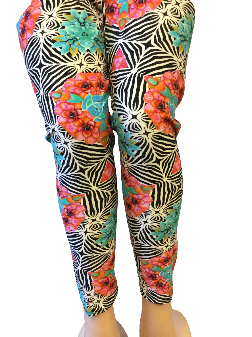 Printed Leggings "Zebra with Flowers"