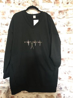 Oversized V Neck Sweatshirt W/ Pockets and Rhinestone Scissor HeartBeat
