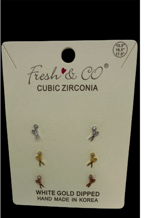 Stylist Cz Scissors Stud Earrings/ 3 pack