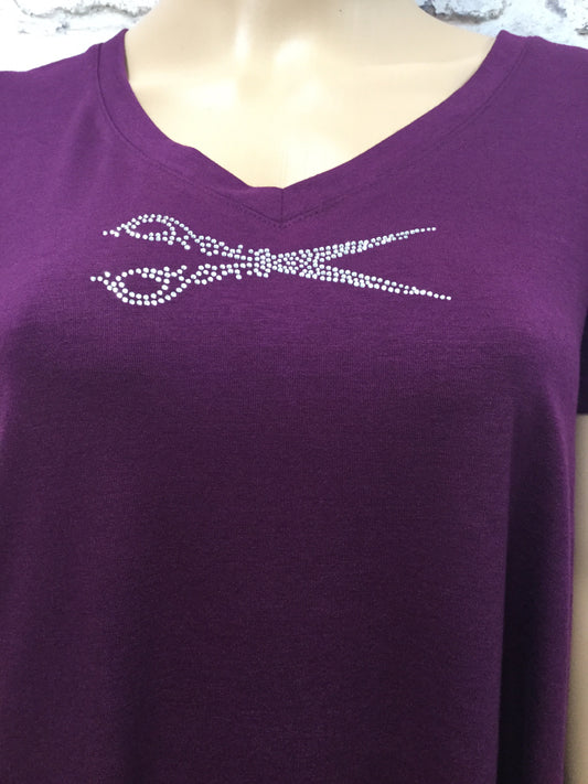 Stylist V Neck "Hair Genius" Rhinestones Top