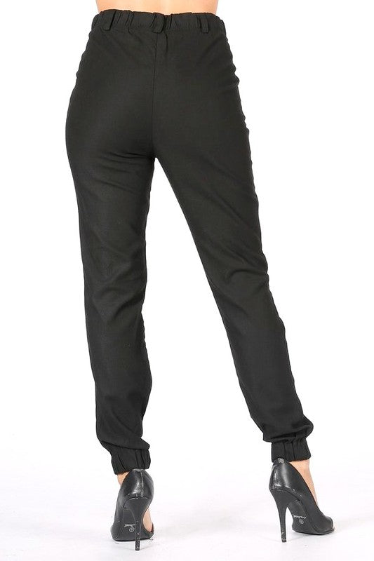 Elevate your wardrobe with these sophisticated high waist cargo pants, crafted from a soft blend of 70% rayon and 30% cotton for exceptional comfort. Designed in a jogger style, they combine a tailored silhouette with practical functionality, featuring a convenient front pocket. Perfect for a refined yet relaxed look that seamlessly transitions from day to evening wear.