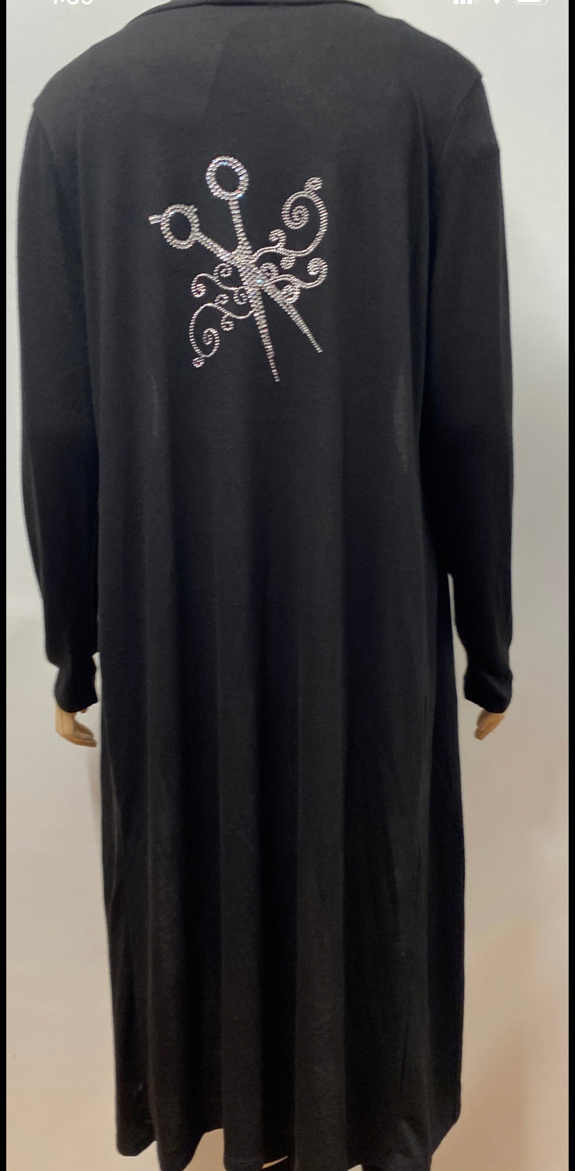 Stylist Long Cardigan with Scissor Rhinestones and Pockets