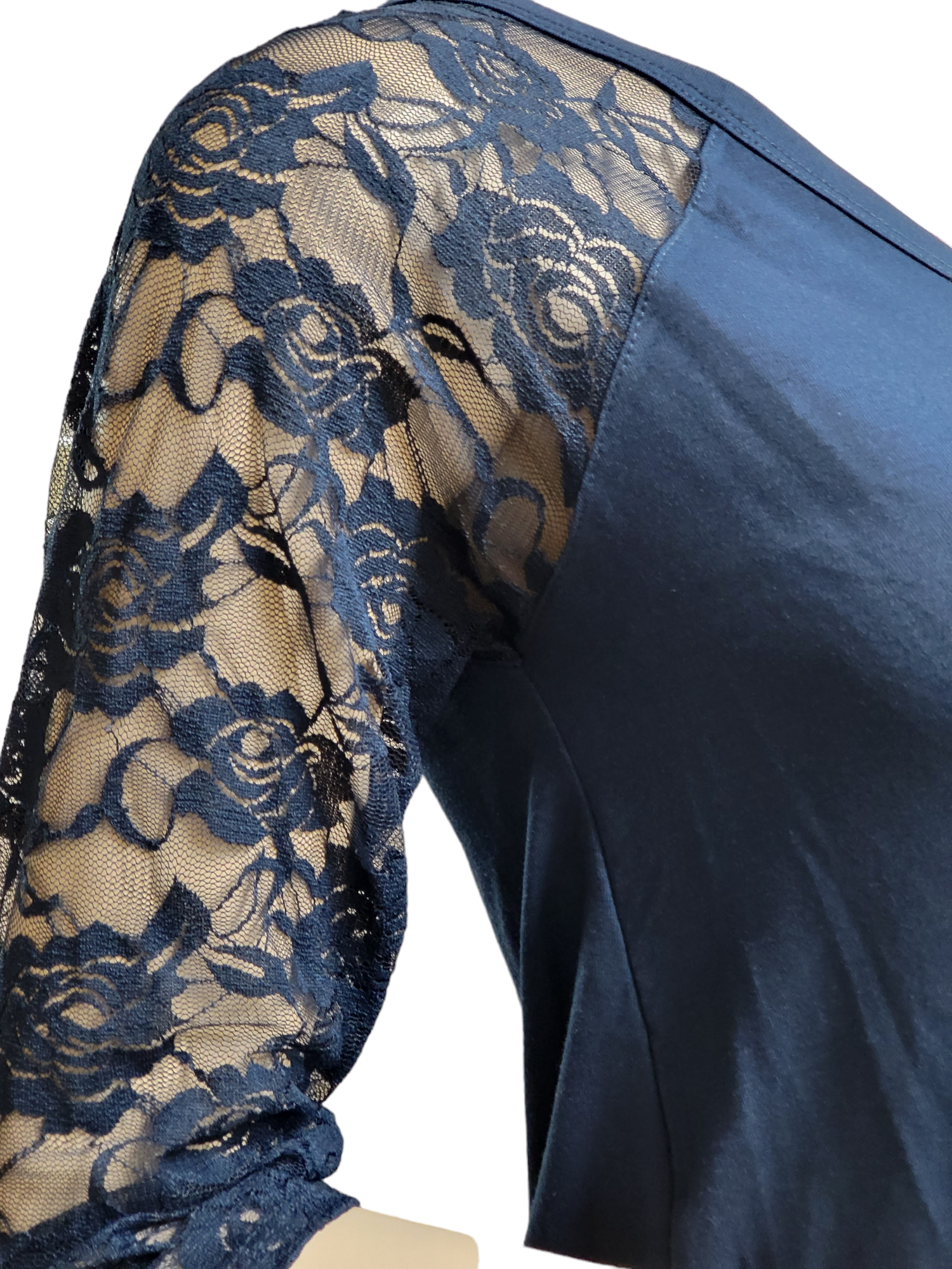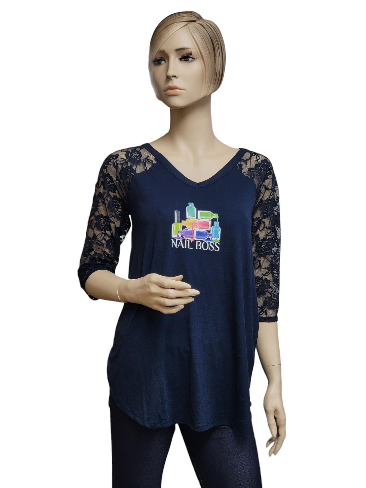 Nail Boss Navy 3/4 Lace Sleeve Tunic