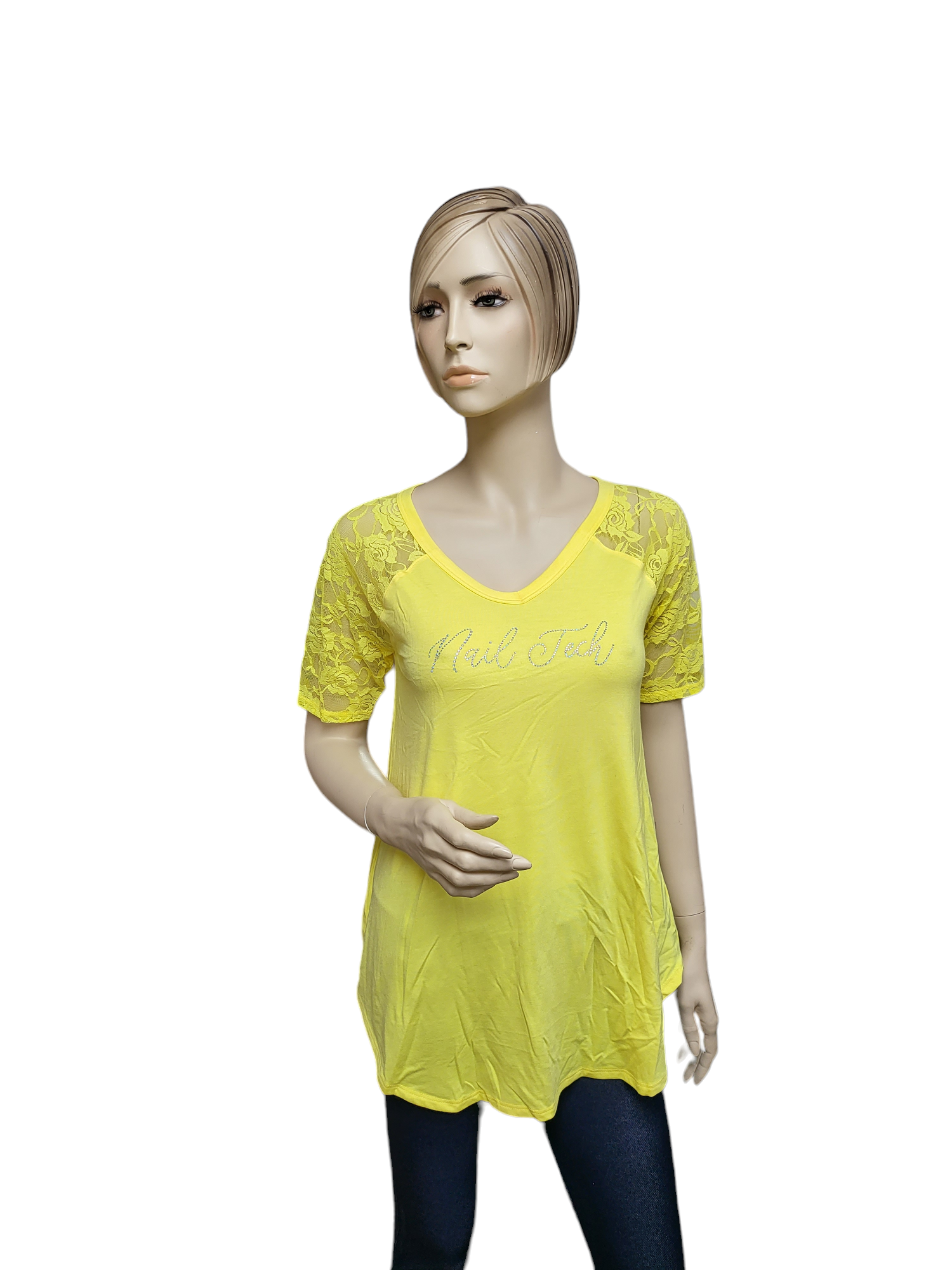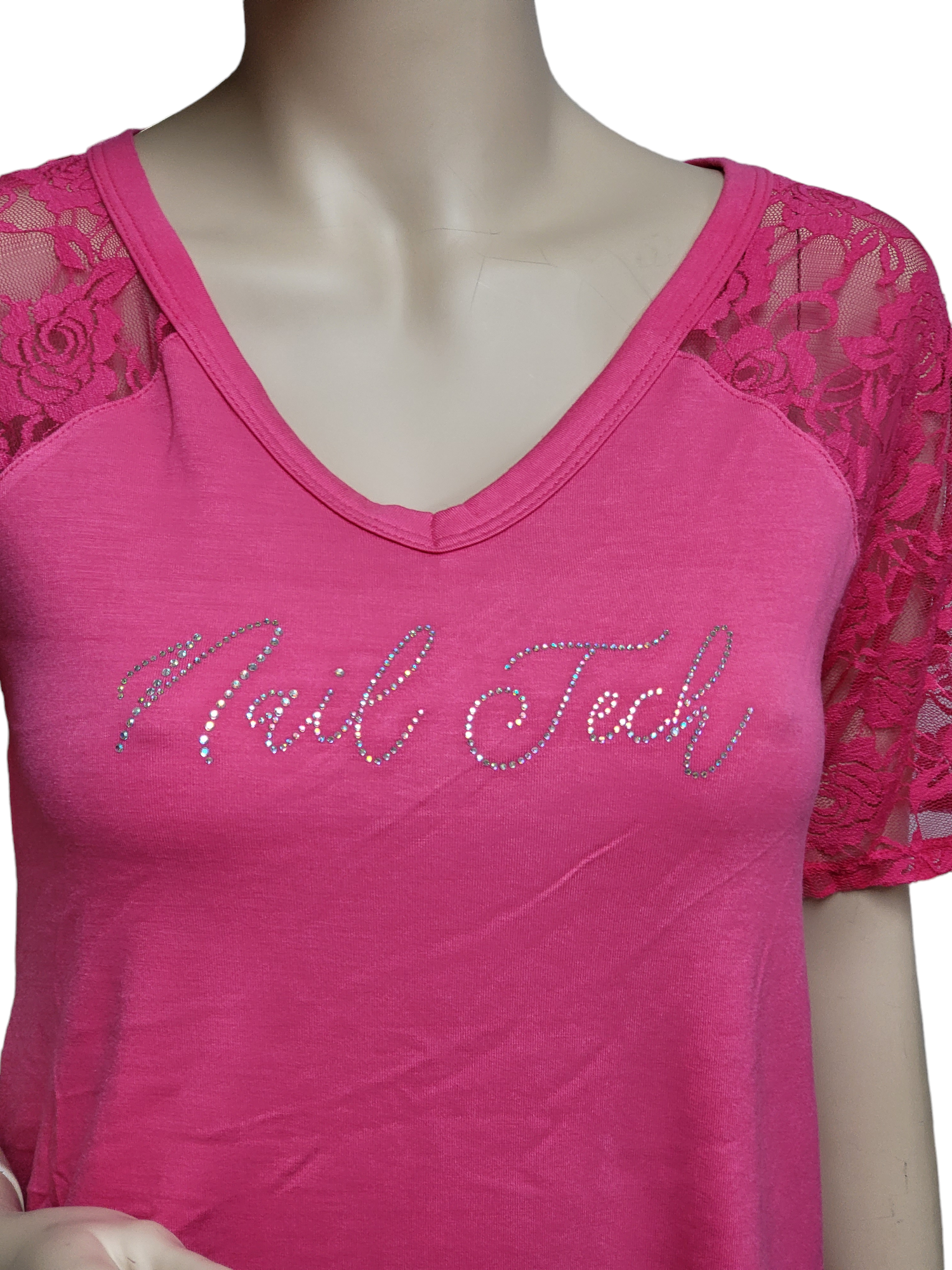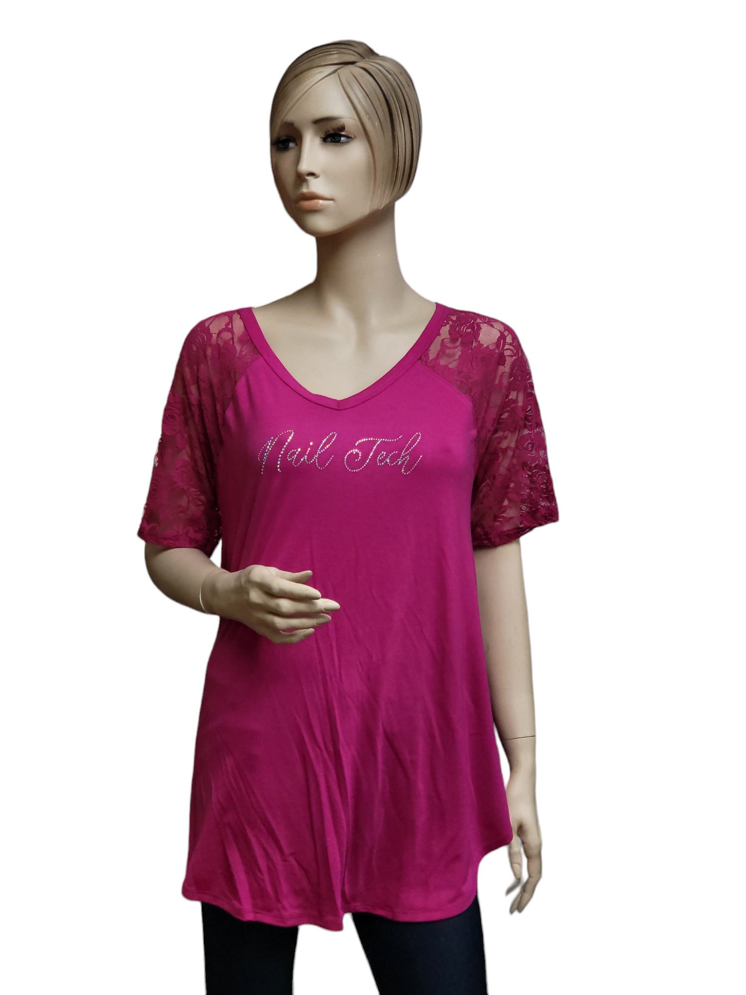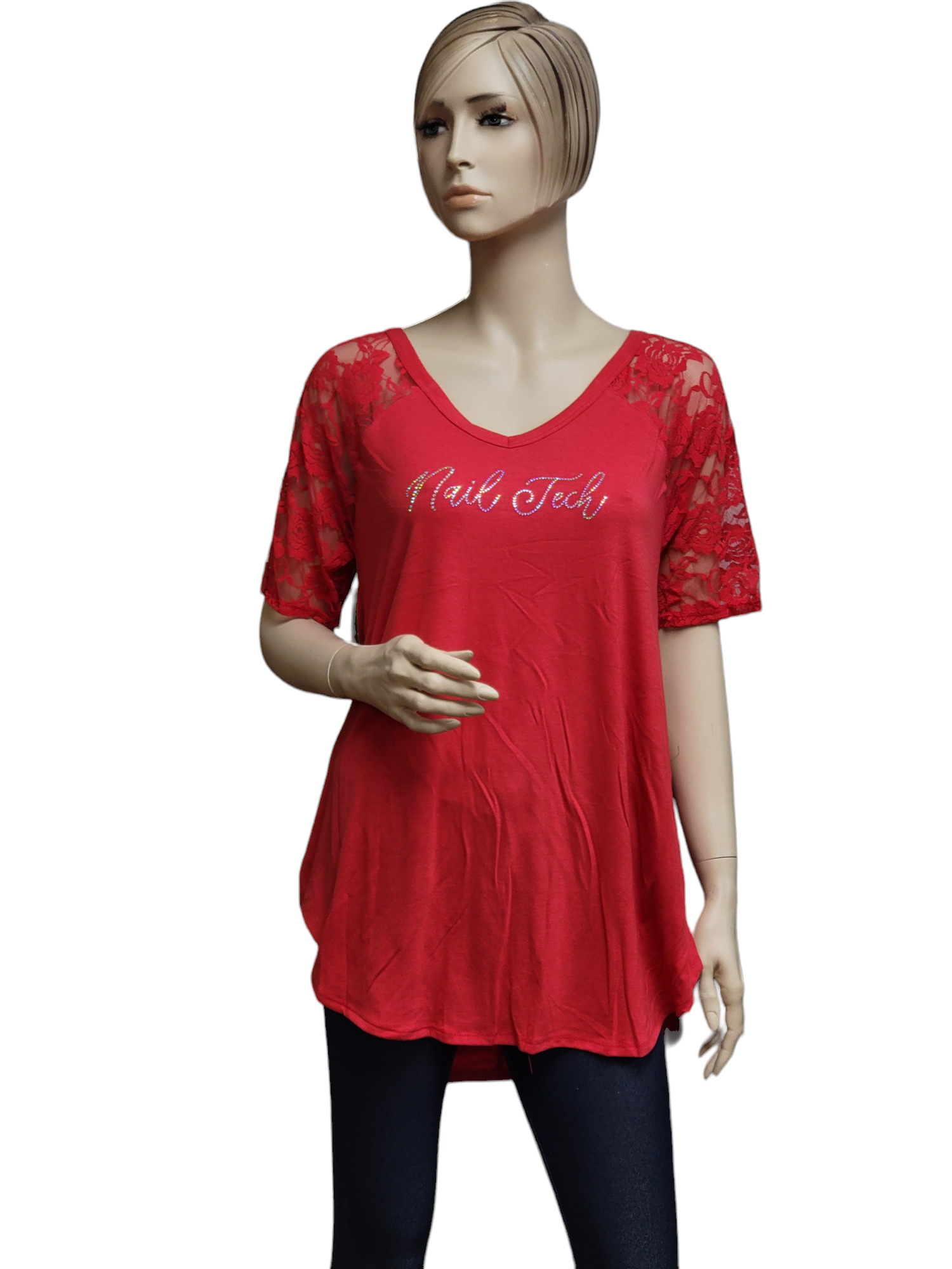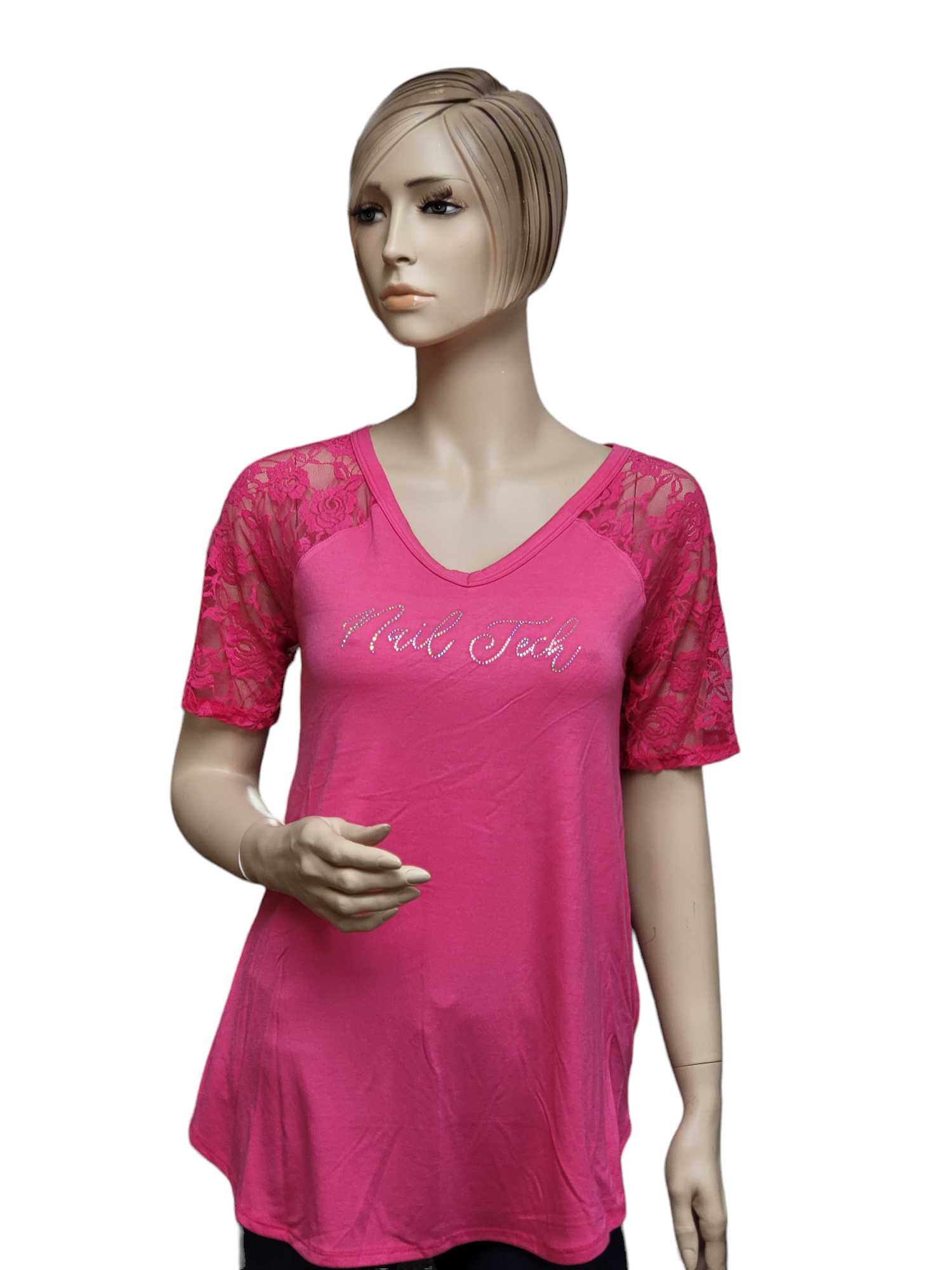 Nail Tech Tunic with Lace Sleeves Multiple Colors