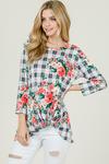 Introducing our Plaid and Floral Knotted Top - the perfect combination of style and comfort. Available in both blue and black plaid, this long sleeve top features a trendy knotted accent at the bottom. Add some variety to your wardrobe with this versatile piece.