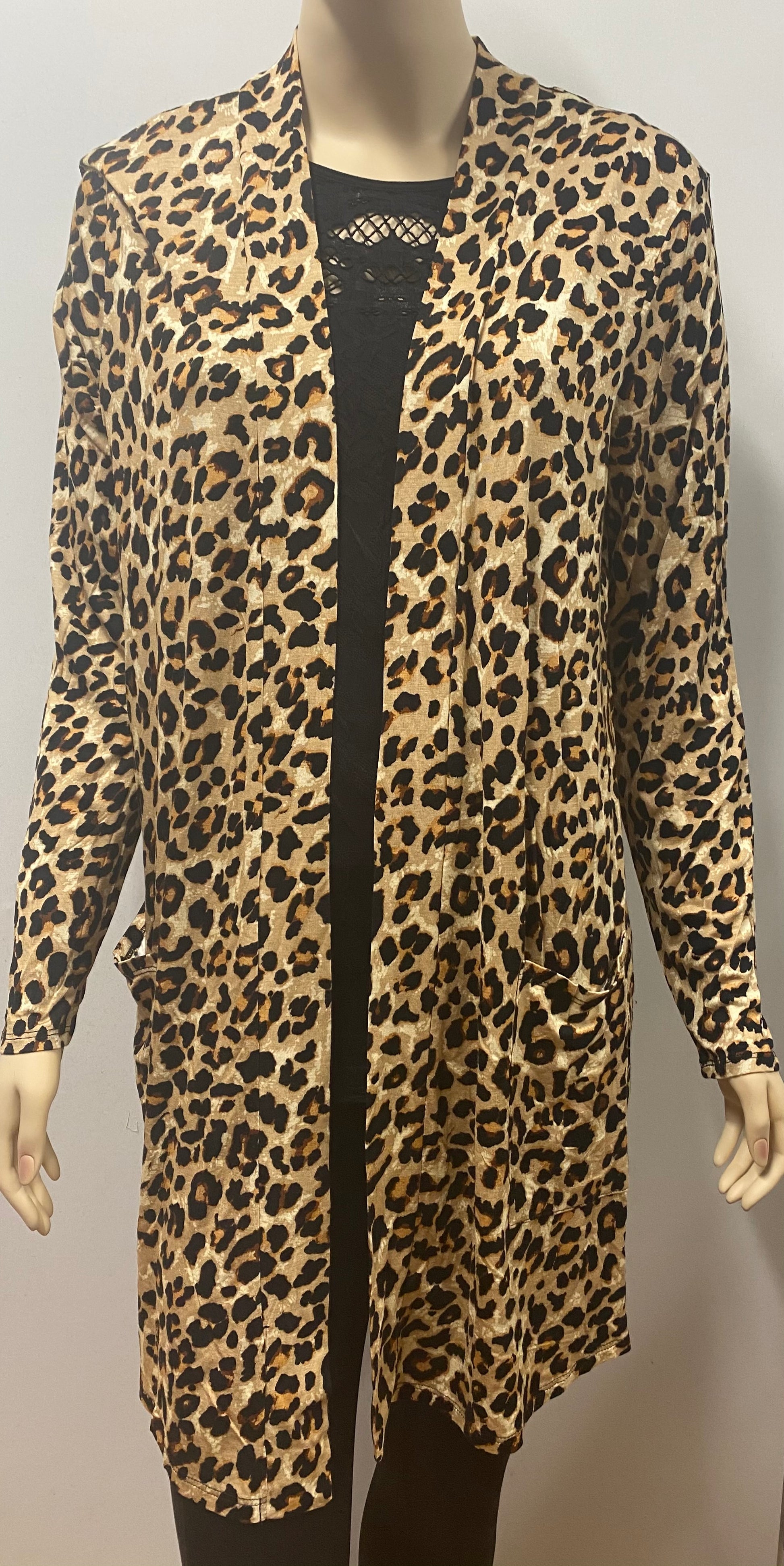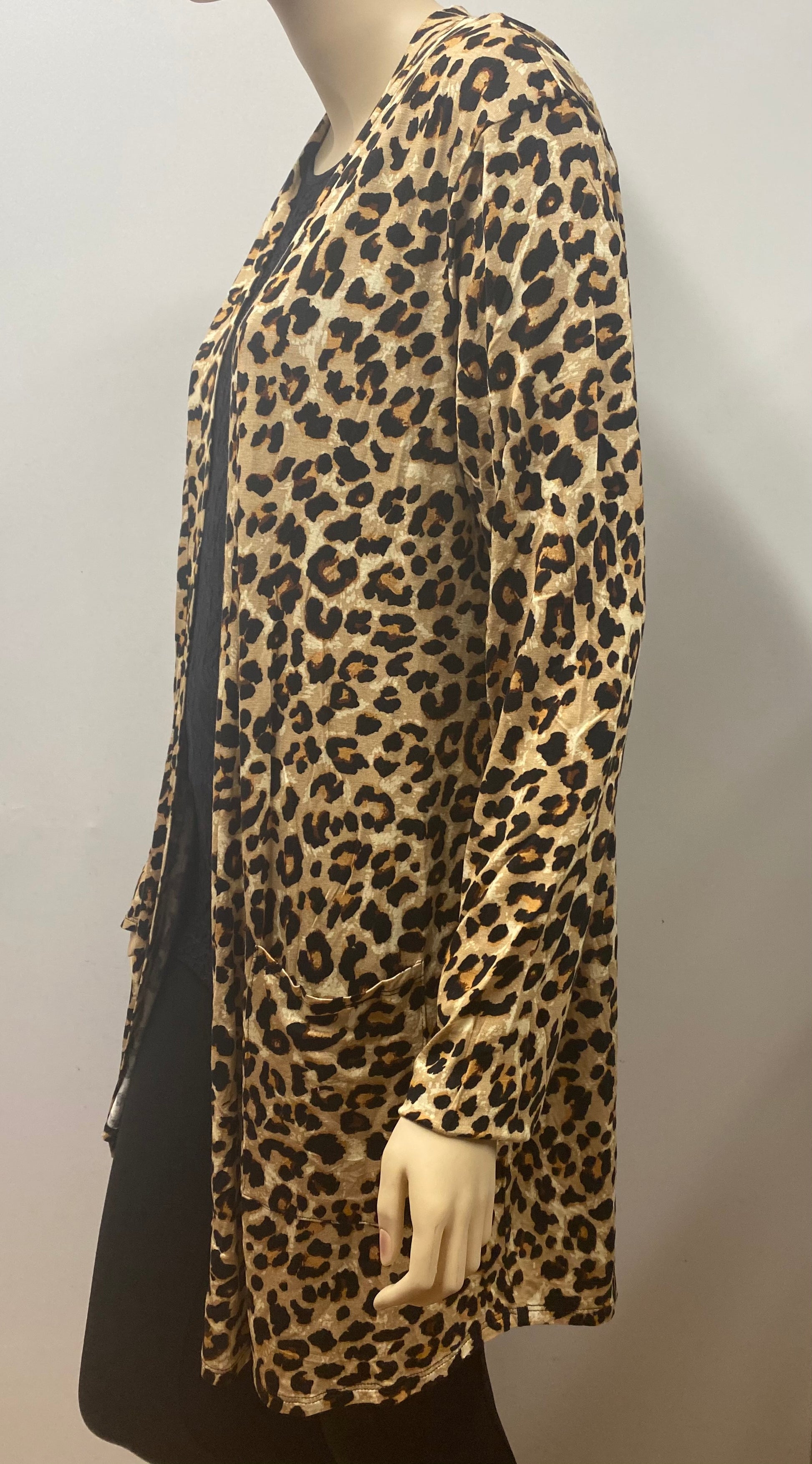 LEOPARD PRINT MID-THIGH SLOUCHY POCKET OPEN CARDIGAN