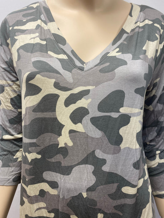 Plus Size Light Green V-Neck Camo top